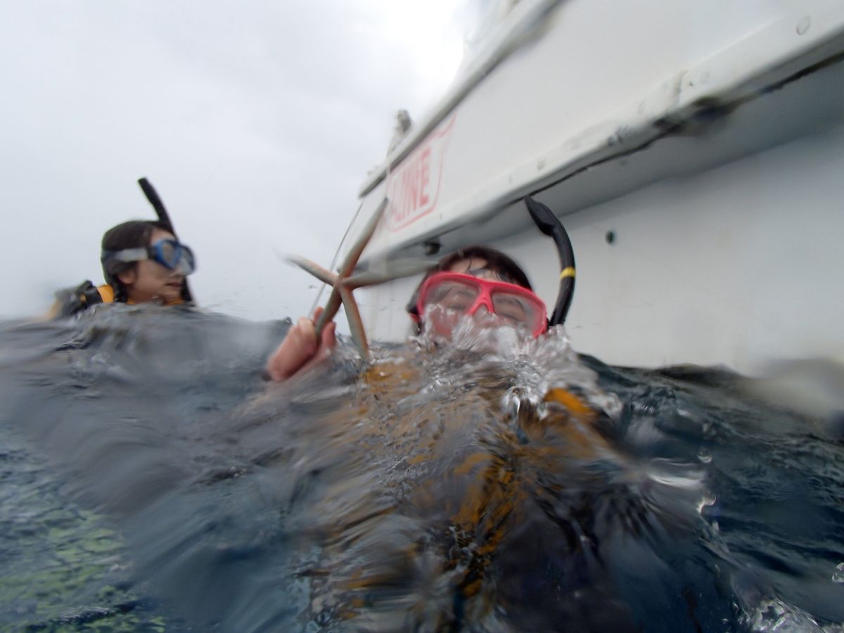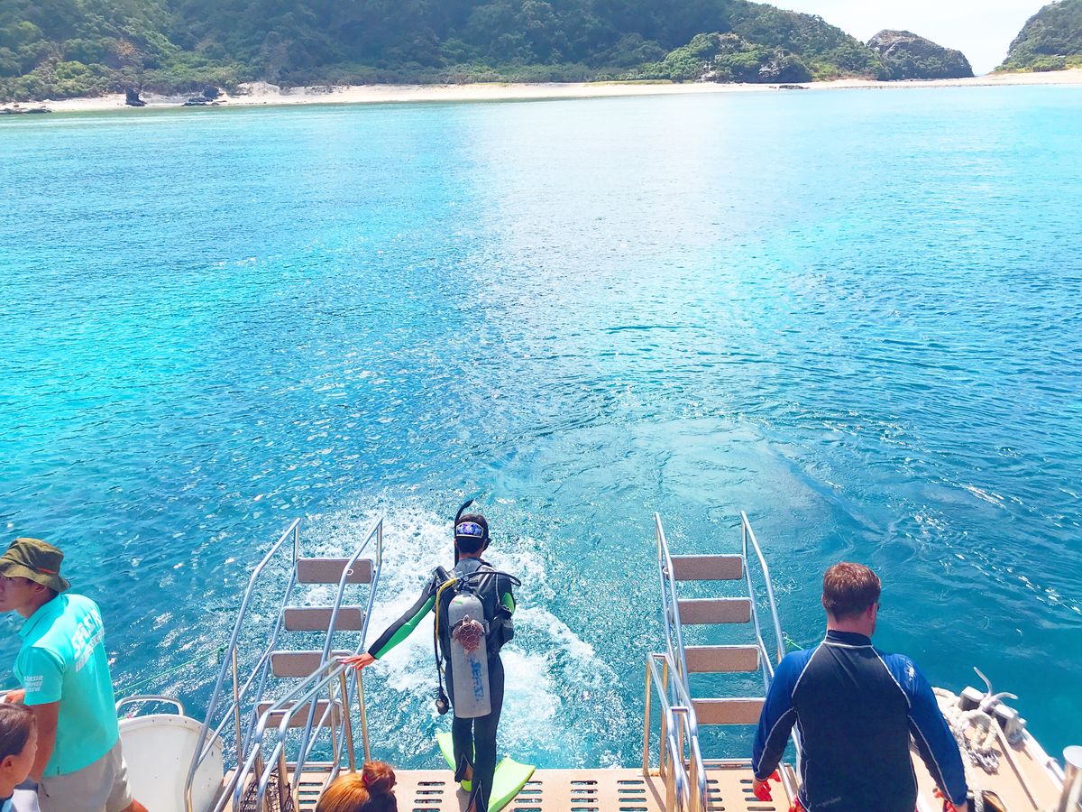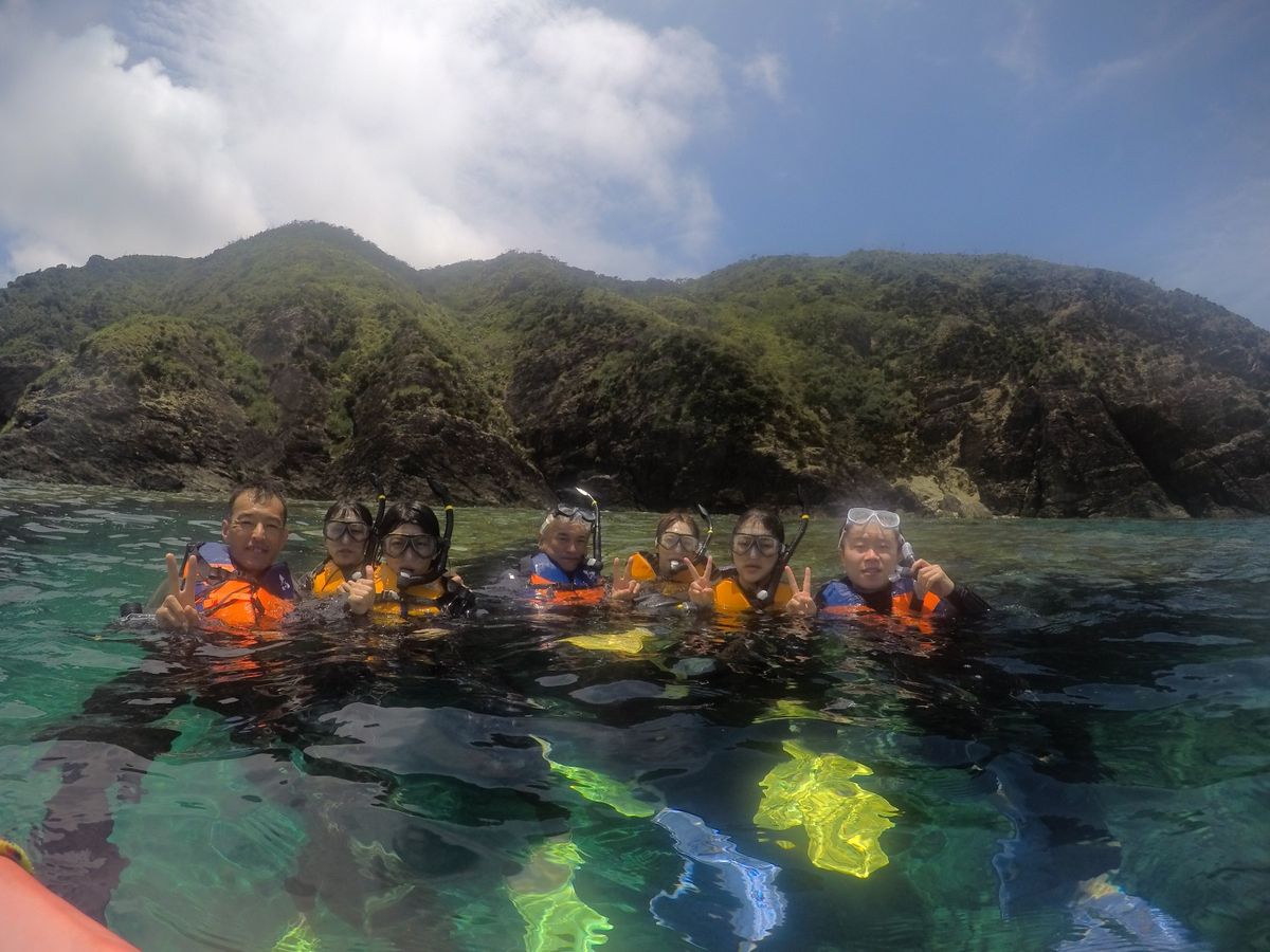 梅雨明けしたばかりで、天気は良かったのですが、移動の船上は風が強くで海に入った後は体温も下がるので長袖は必須だと思いました。