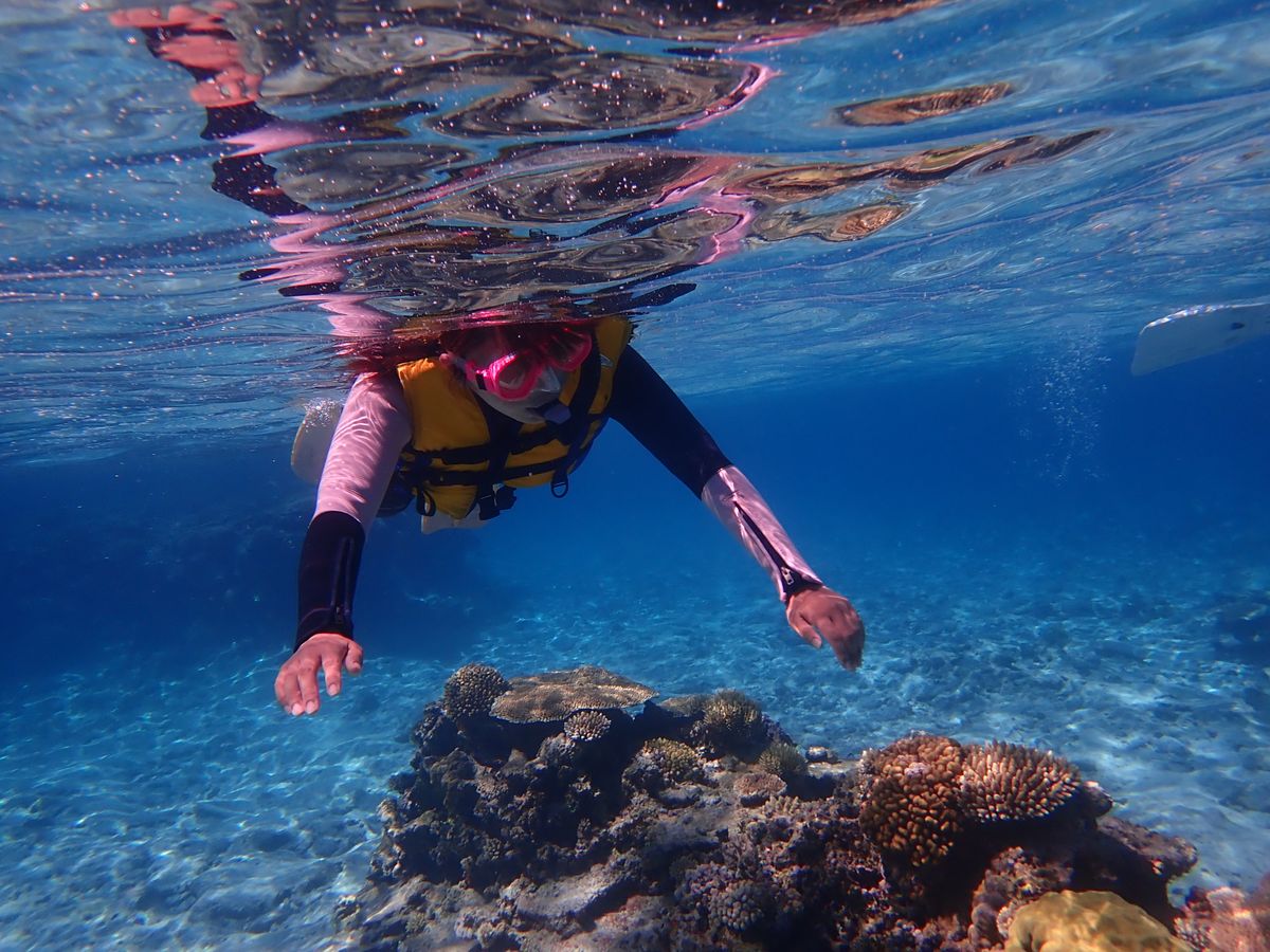今まで、石垣島、バリ、サイパン、ハワイなどでシュノーケリングしましたが、透明度は一番かも?