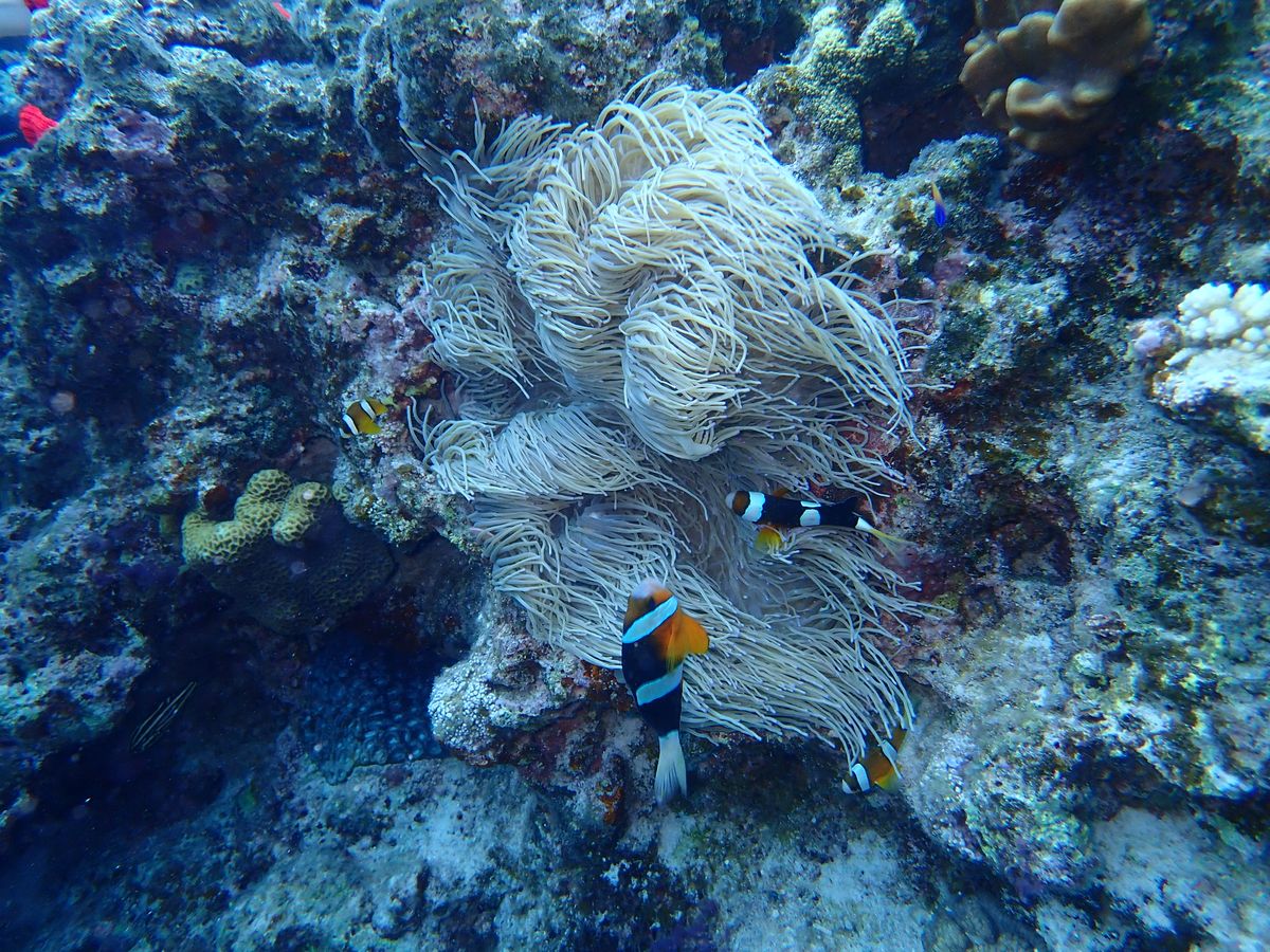シュノーケル半日でした。注意事項などの説明が船上で紙芝居を見せられたのでそこで船酔いが。シュノーケリングは深い海の上からのみ。ダイブしている人は良いがシュノーケルでは魚やサンゴは遠すぎて見えず。船内に女性スタッフがいない。