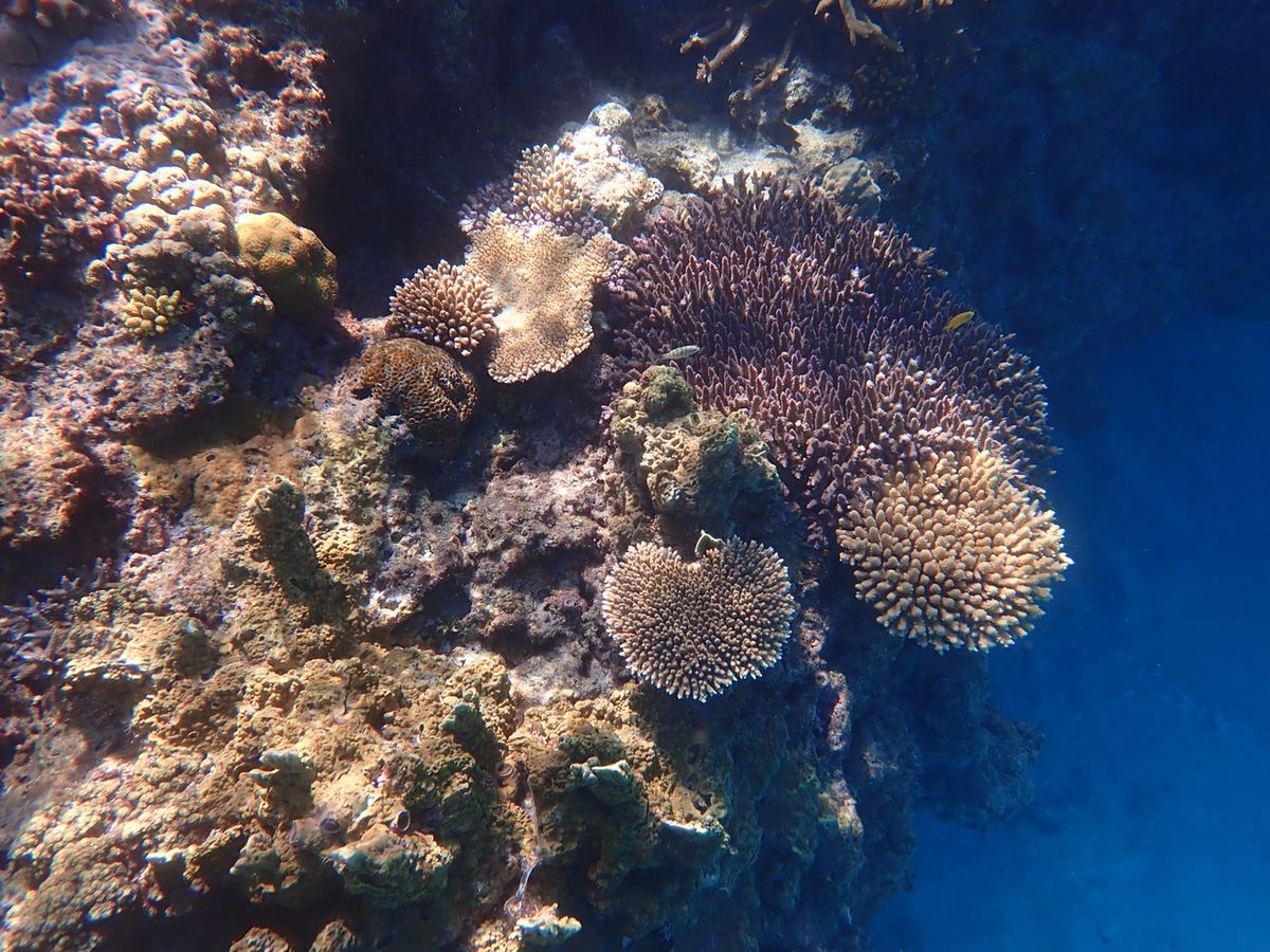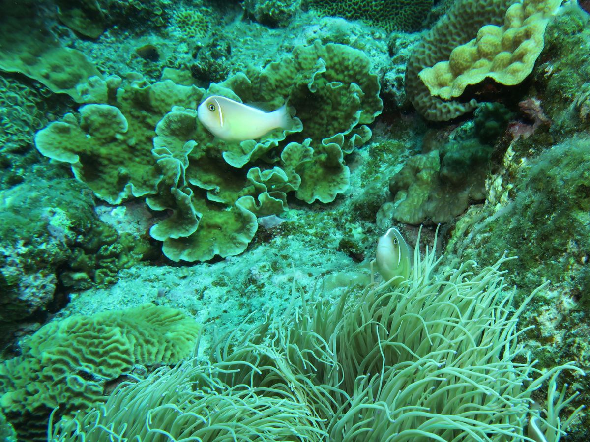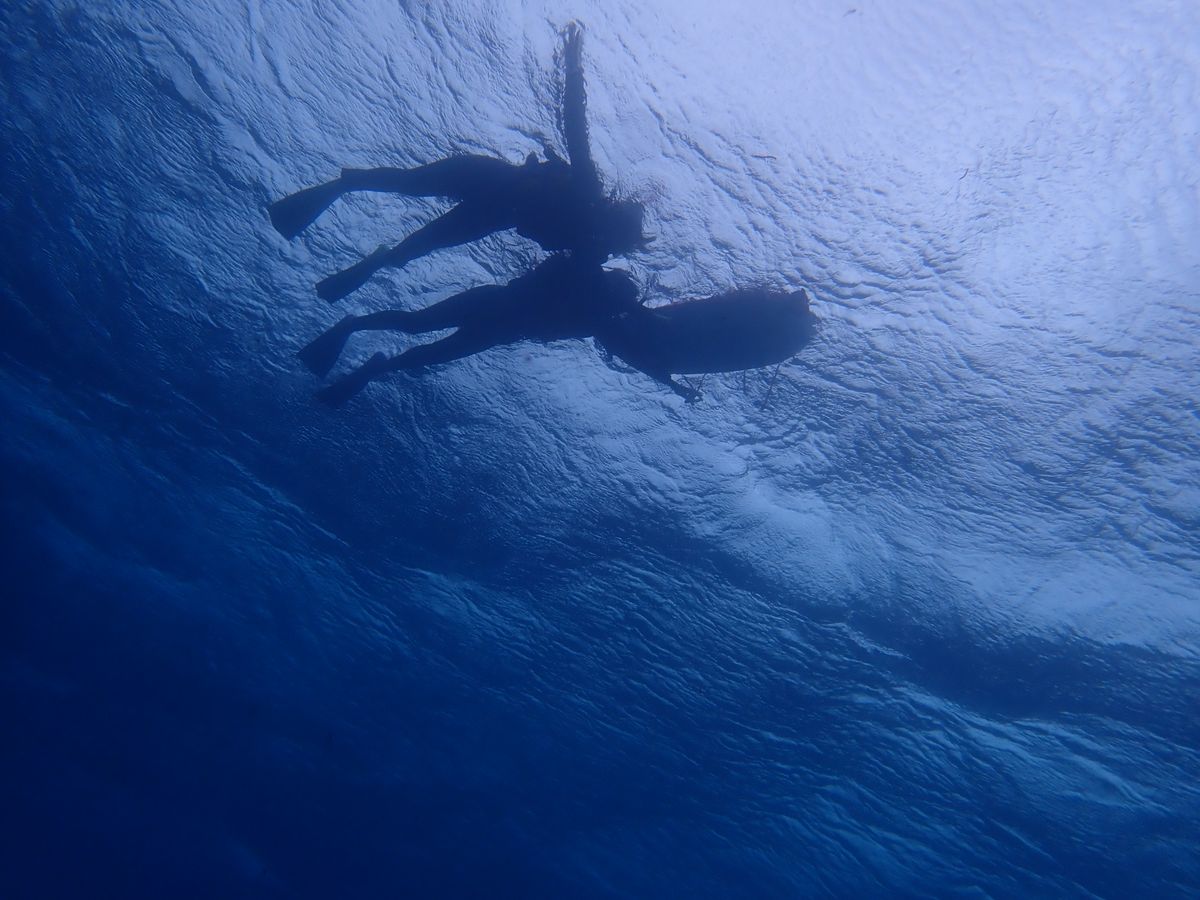 もう水深何メートルだろう?底までくっきり見えて、お魚もたくさんいます。