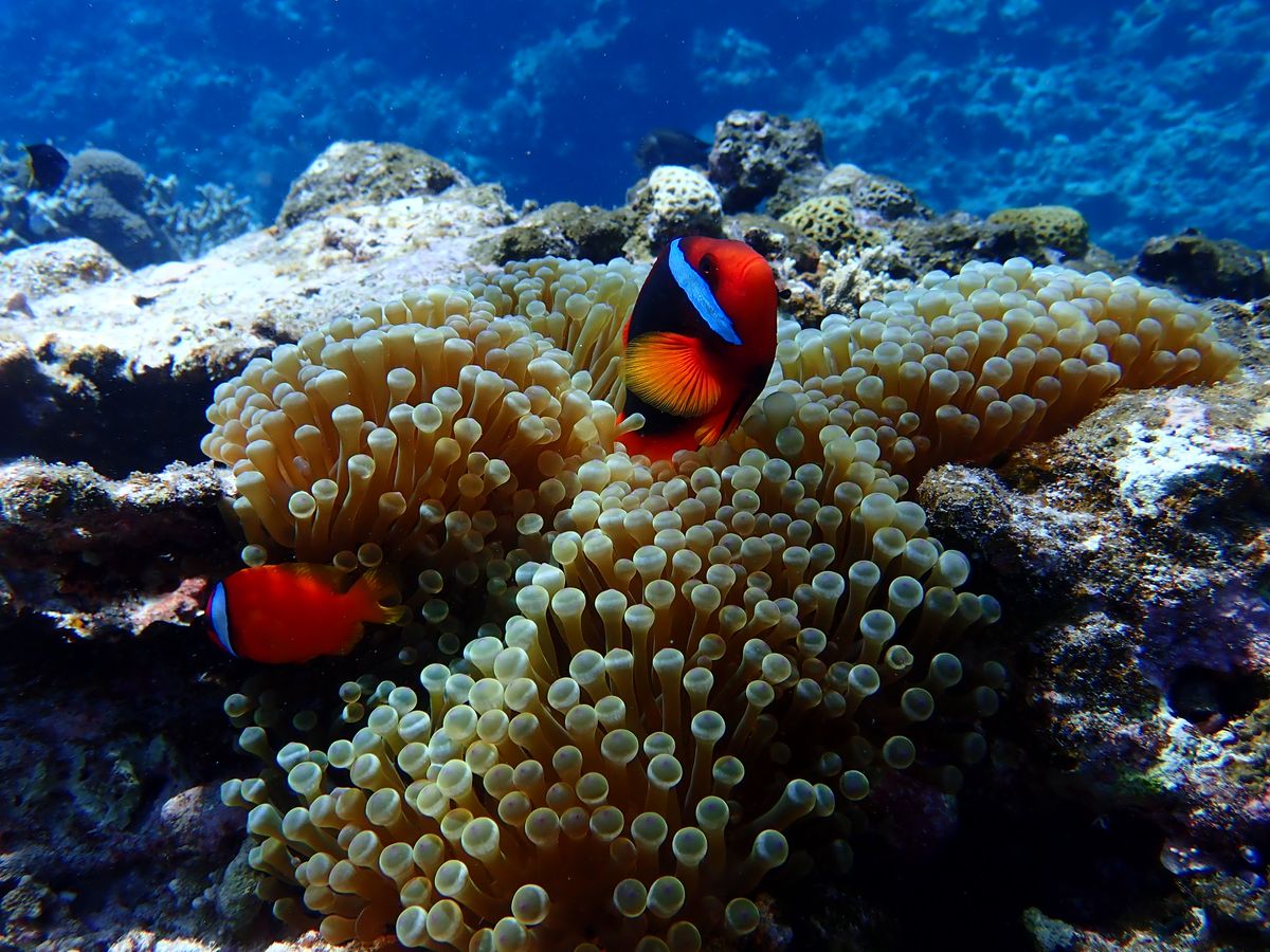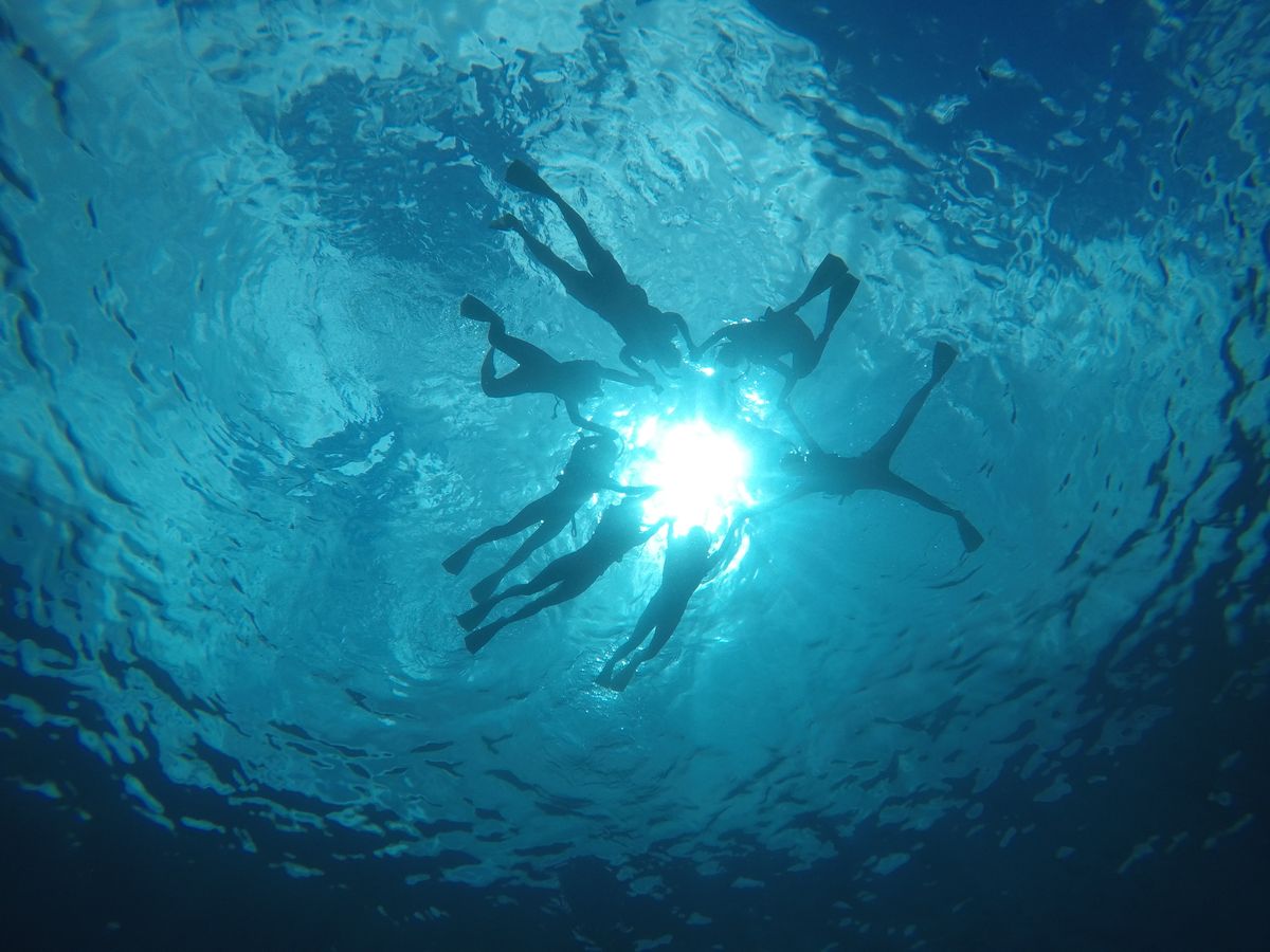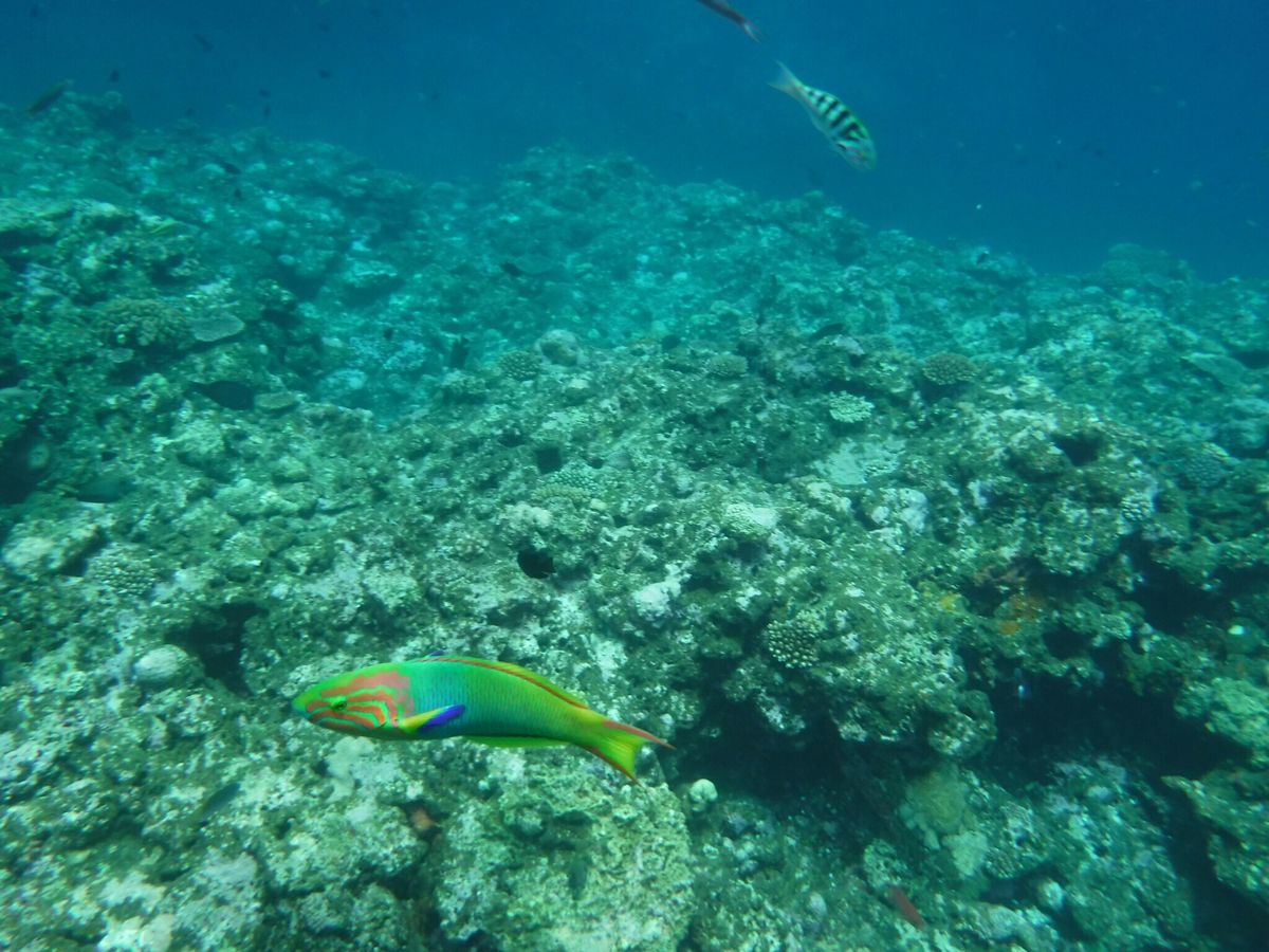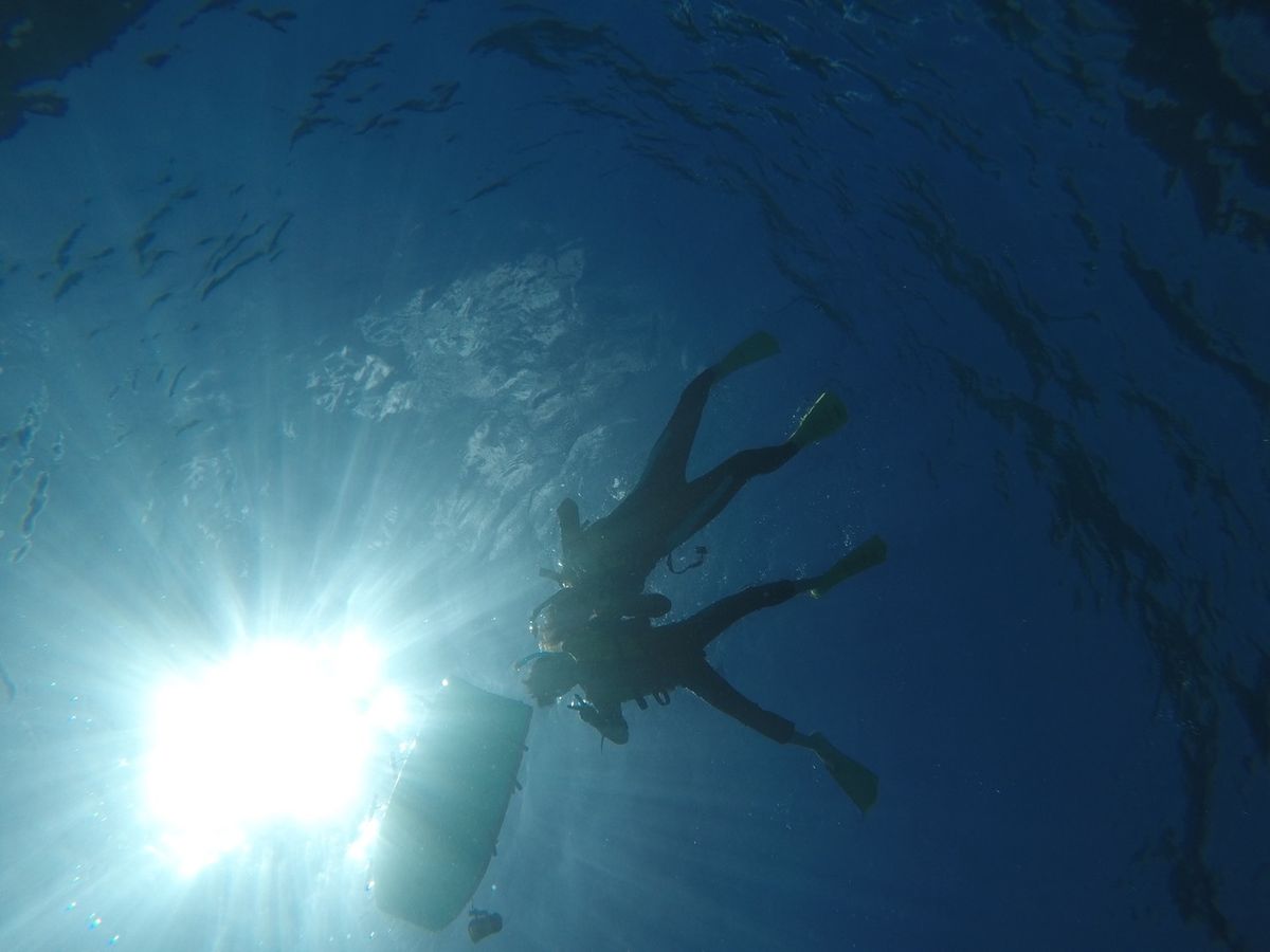 もう水深何メートルだろう?底までくっきり見えて、お魚もたくさんいます。