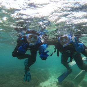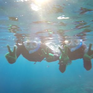 二人ともシュノーケリングは初めてでしたが、親切に対応していただいて、とても良い思い出になりました。天候の影響で、青の洞窟に行けなかったのは残念ですが、綺麗なサンゴや魚を見ることができたので良かったです(^^)