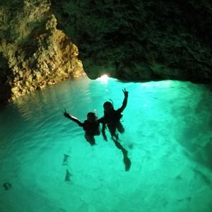 当初波が高くて行けないかもしれなかった洞窟、結果入ることが出来て、その青さに感動です。また写真や動画も色々な角度から沢山撮っていただき、二人の大切な思い出作れて最高です。次はダイビングしてみたいです。