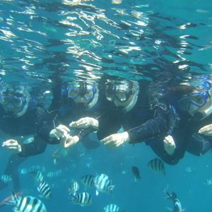 いよいよ海に入るというときにはインストラクターの方が1組に1人ついてくださるので、本当に安心してダイビングに挑戦できました。海の中には沖縄ならではのトロピカルフィッシュがたくさんで、水も透き通り美しく、日常ではできない体験でした。海の底から上を見上げるとたくさんの魚たちが泳いでおり、幻想的でした。また、海の中での写真も撮影してくださり、しっかりと思い出に残すことが出来ました。これはとてもうれしいサービスです。軍手を貸出してくださるので、魚達に餌をやるときも全く怖くなく、むしろとても楽しめました。最後にシャワーの貸し出しやドライヤー・タオルまで用意してくださっているので水着のみの持参で参加できることはありがたかったです。本当に貴重な体験ができました。また参加したいです。ありがとうございました。