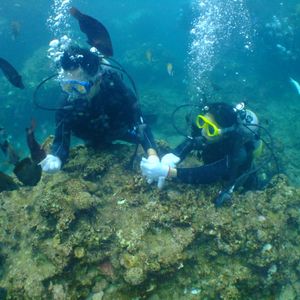 ダイビングは2回目でしたが、実は初めての時にうまく耳抜きができず、ほとんど潜ることができなくて…。今回は再チャレンジの意味も込めてナギさんに予約させて頂きました!潜る前までに、耳抜きの仕方や呼吸の仕方を丁寧に教えてくださり、潜ってからも私たちの様子を常に気にかけて頂いたお陰で、安心して楽しむことができました。心に余裕ができた分、海の中をキョロキョロしてみたのですが、陸の世界とは全く違う景色にびっくり…!綺麗という言葉だけじゃ言い表せないくらい素敵な世界が広がっているので、ぜひ体験してみてください!