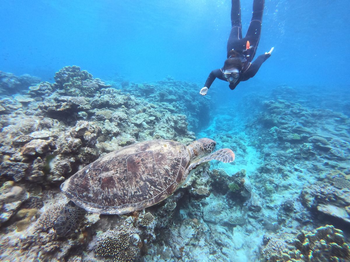 ウミガメに向かって素潜りされていてタイミングばっちりでしたね!