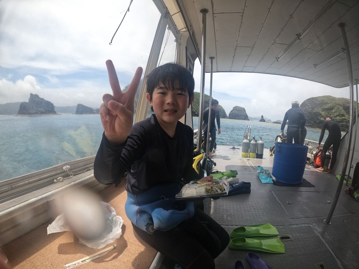 天候が悪く少し慶良間諸島まではだいぶ揺れました…が、海の中はとてもきれいで、初めてのダイビングでも安心して望めました!