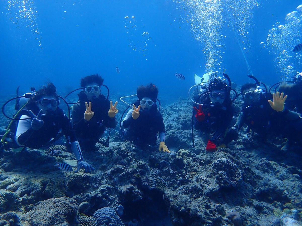 10/17に家族5人で参加しました。体験ダイビングは1人のインストラクターに2名までしか引率できないのですが、3人のインストラクターで2名+2名+1名を引率してしただき、家族5人の集合写真を撮影していただき、とても良い思い出となりました。インストラクターの方はとても親切で、不安のあったダイビングも5人全員楽しめました。慶良間の海はとても綺麗でしたが、想像していたよりはお魚の数が少なかったこと、ウミガメには出会えなかったことが少し残念でした。乗船後に格安でのパラセーリングのオプションも用意されており、思いがけずのパラセーリング体験もでき、沖縄での1日をとても有意義に過ごすことができました。
