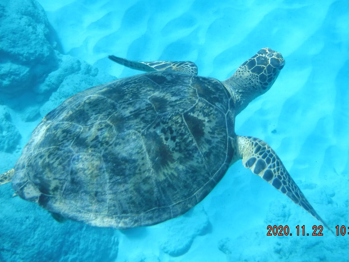 お写真にもウミガメがしっかり写ってますね。なかなか近くで泳ぐことは普段ないと思うので、興奮しちゃいます(笑)