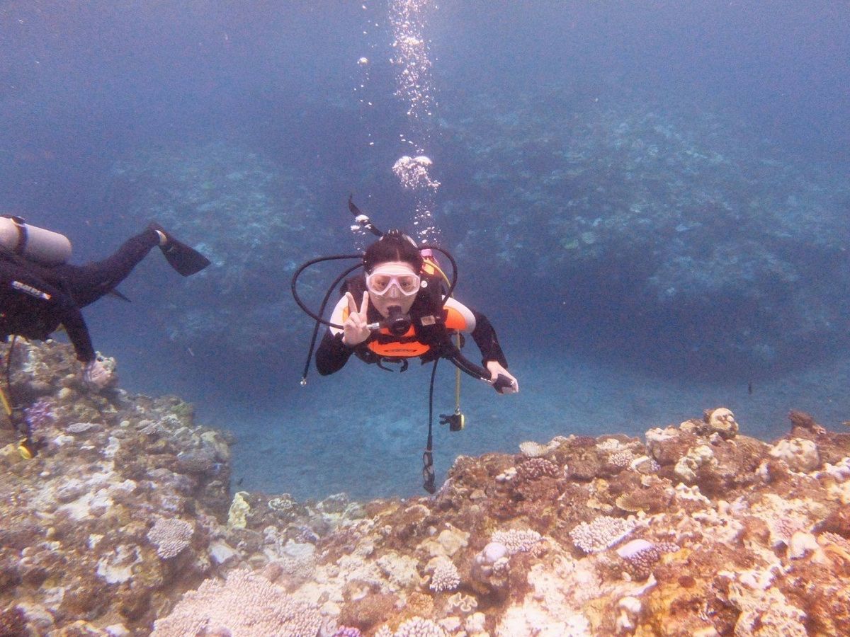 泳ぎが得意ではないのに一人参加。初めての体験ダイビングは不安もありましたが、マンツーマンでインストラクターさんがついてくれたので、他の方に迷惑をかけるんじゃないかなどの心配をせずに楽しむ事が出来ました。1本目は余裕がなかった私でも2本目で海ガメと超接近出来て感動しました!シュノーケリングでは味わえない海中散歩は大変楽しかったです。また次回沖縄へ行った際はリピートで、今度はマンタに会いたいです!丁寧に私のペースに合わせて案内して下さったインストラクターさん、ショップの皆様、貴重な体験をさせて下さりありがとうございました。