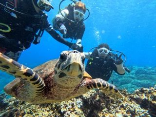 私は久々のダイビングで、夫は初心者でしたが、上手に指導、誘導していただき夫も大満足していました。2本目で念願のウミガメにも会え、追加で潜った3本目では潮の流れを感じながら泳ぐのは初体験でGTも見れてとても楽しかったです!