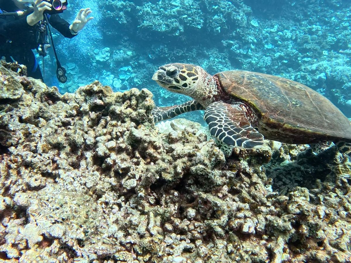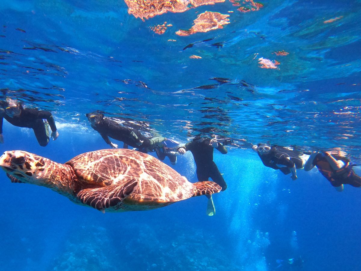 急遽決めたツアー参加でしたが、スタッフの方が初対面の参加者を楽しくまとめて面倒見てくださって自分たちなりに楽しむことができました。出発前にウミガメが見れますように…と話をしていて、本当に人生初のウミガメに遭遇できて感動でした。ウミガメは運だよ、とのことでしたがスタッフの方もウミガメに会えるように気にかけてくださってありがたかったです。自分たちではなかなか行けないポイントに行けるのはツアーならではですね!また参加したいと思います。船酔いになる暇がないくらい、いろいろあっという間でした。お世話になりました。