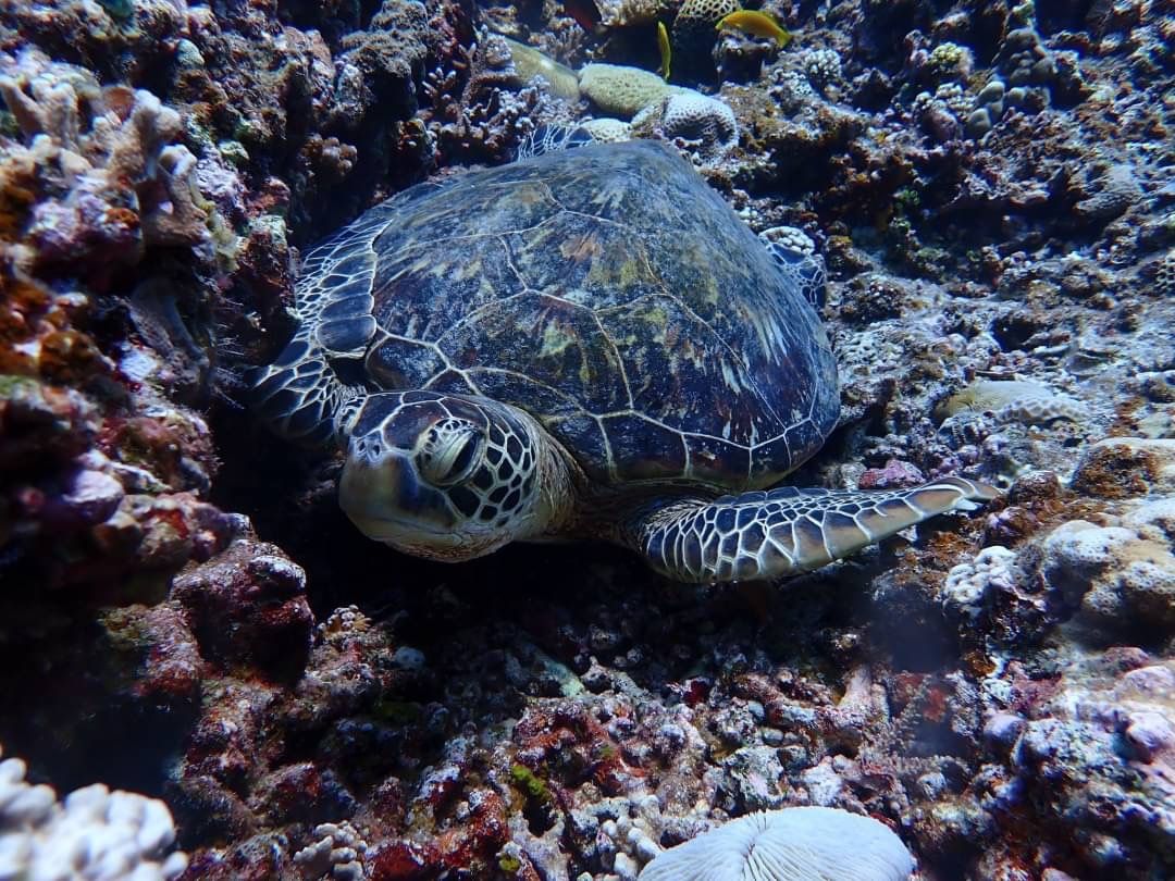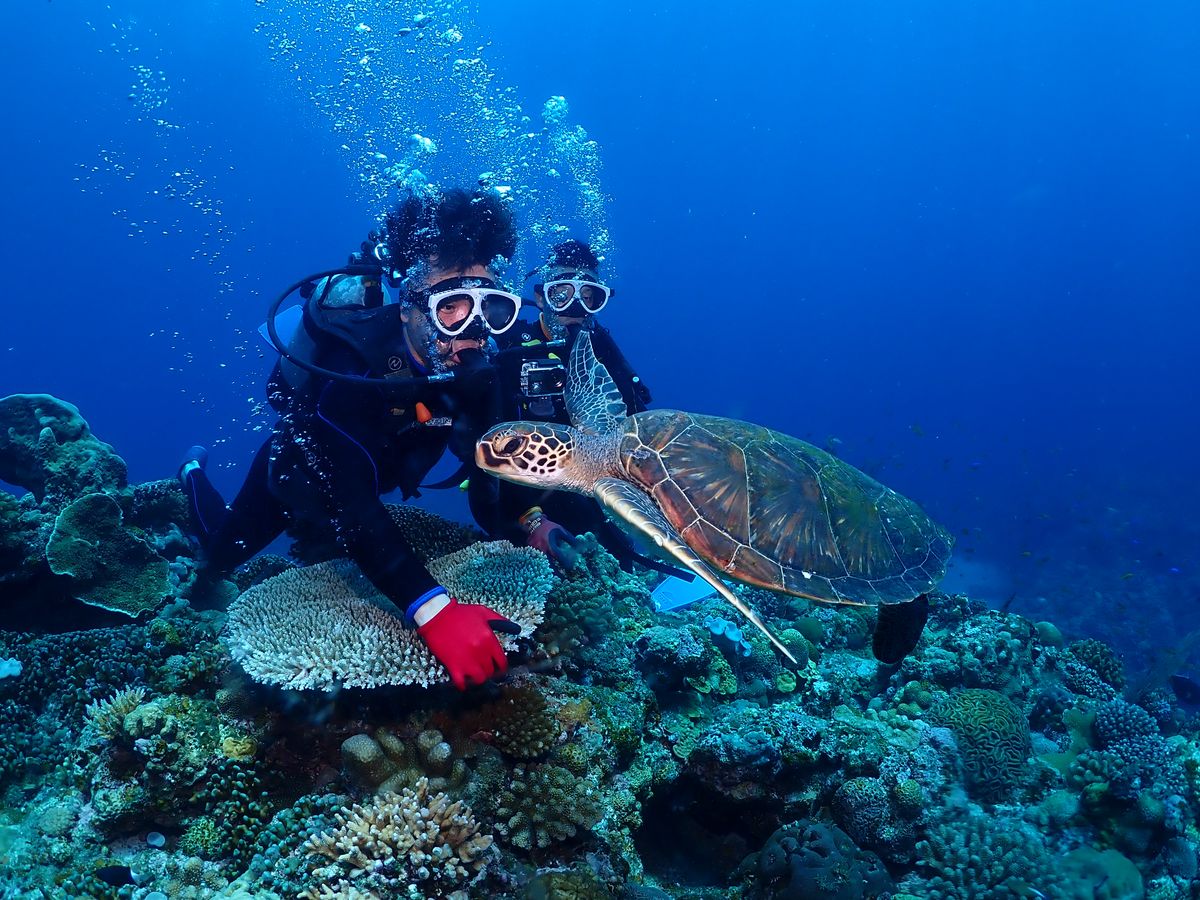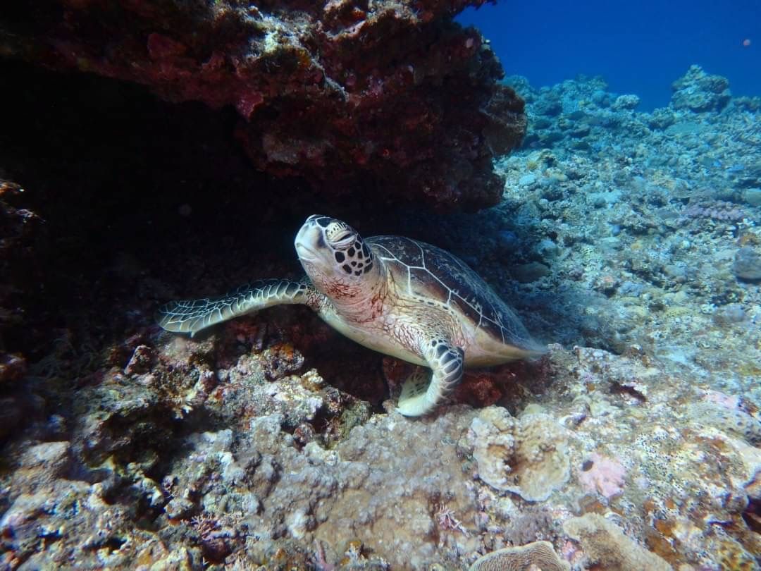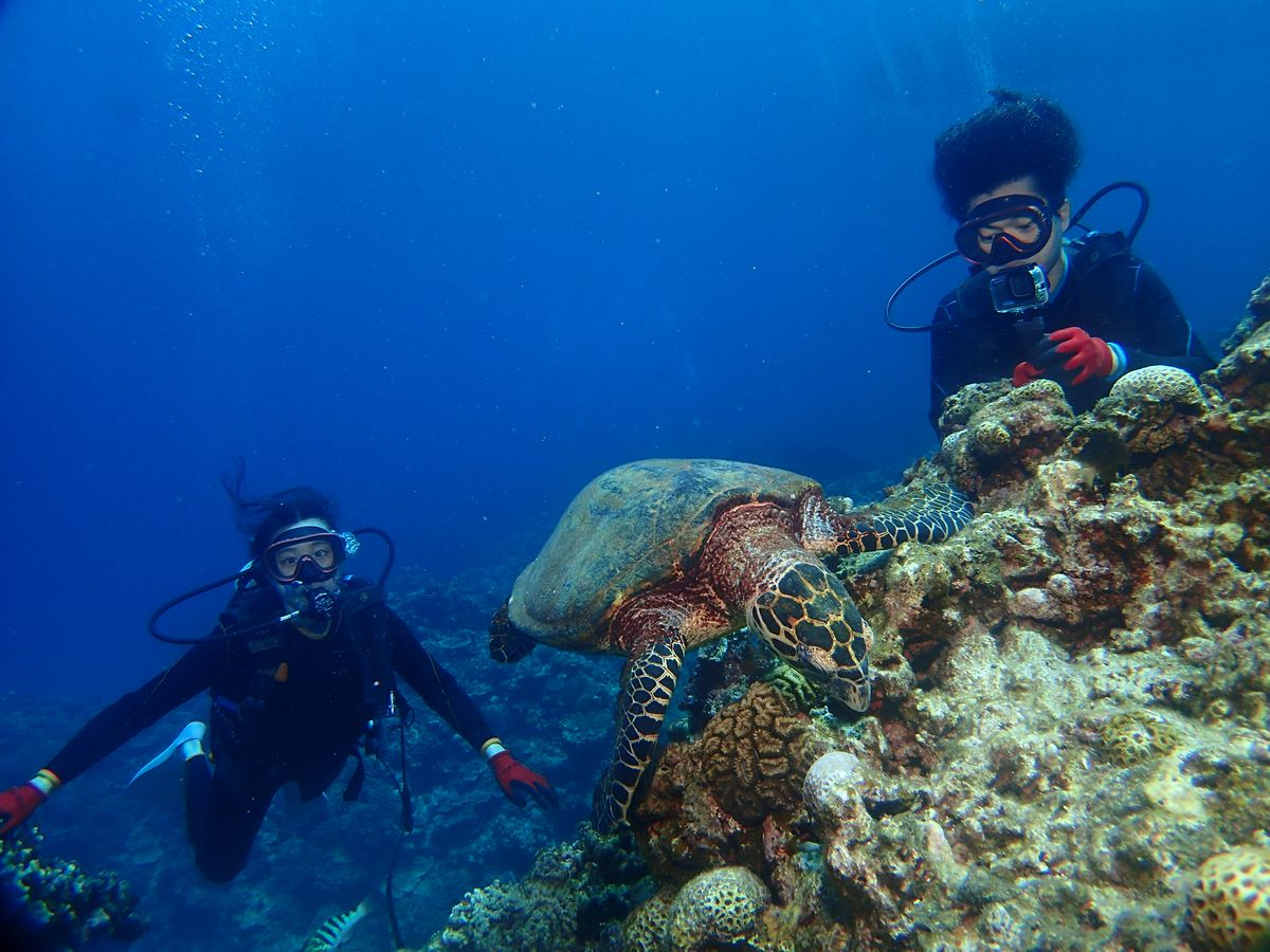 ダイビングで一回、シュノーケリングで一回ウミガメを見ることもでき大満足です!