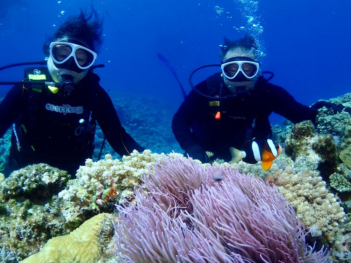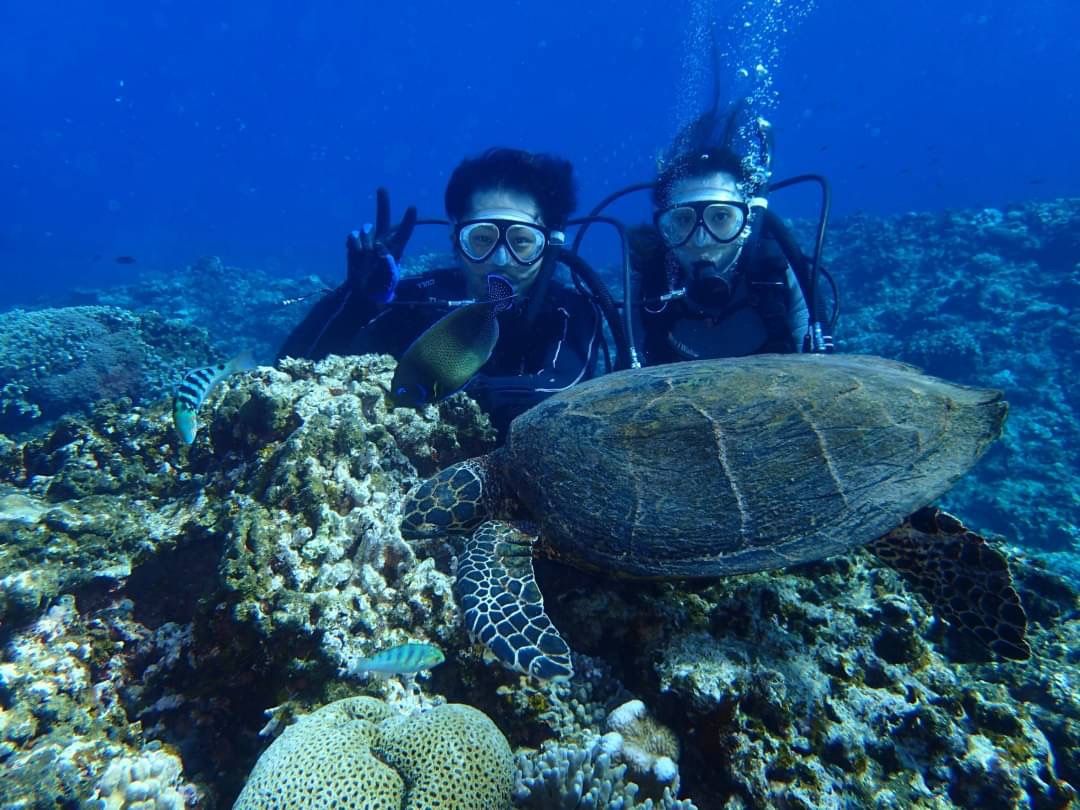 初ダイビングは、2人一組に対して、インストラクターの方が2人、ずっと付き添ってくれて安心できました。