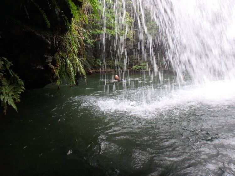 滝の真下に行き滝を浴びたり(写真)、ターザンロープをしたり、