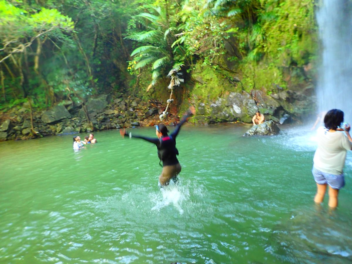 最初は大してノリノリでもなかった息子ですが、段々はまっていって、滝に着いたら何度も何度もジャンプを繰り返し・・・最後にはなかなかの姿勢でロープからジャンプできるようになりました。子どもたちにとってはもちろん楽しさ満載のツアーですが、大人にとってもとっても楽しいアクティビティでした!私もターザンロープからジャンプしてみようとしましたが・・・けっこう難しく、ただズルズルと落ちただけになってしまったのは悔しかったです(;^ω^)
