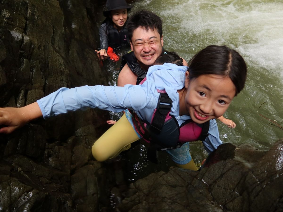 親息子(8歳)の3人で参加しました。息子はアドベンチャーな体験に興奮気味でした。川の流れや滝の水圧を感じながらのキャニオニング初体験。ガイドの方の適切なアドバイスを参考にしながら自らの工夫と体力を使って楽しめるツアーでした。