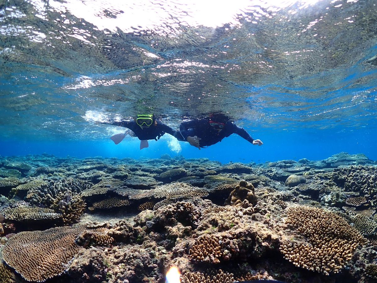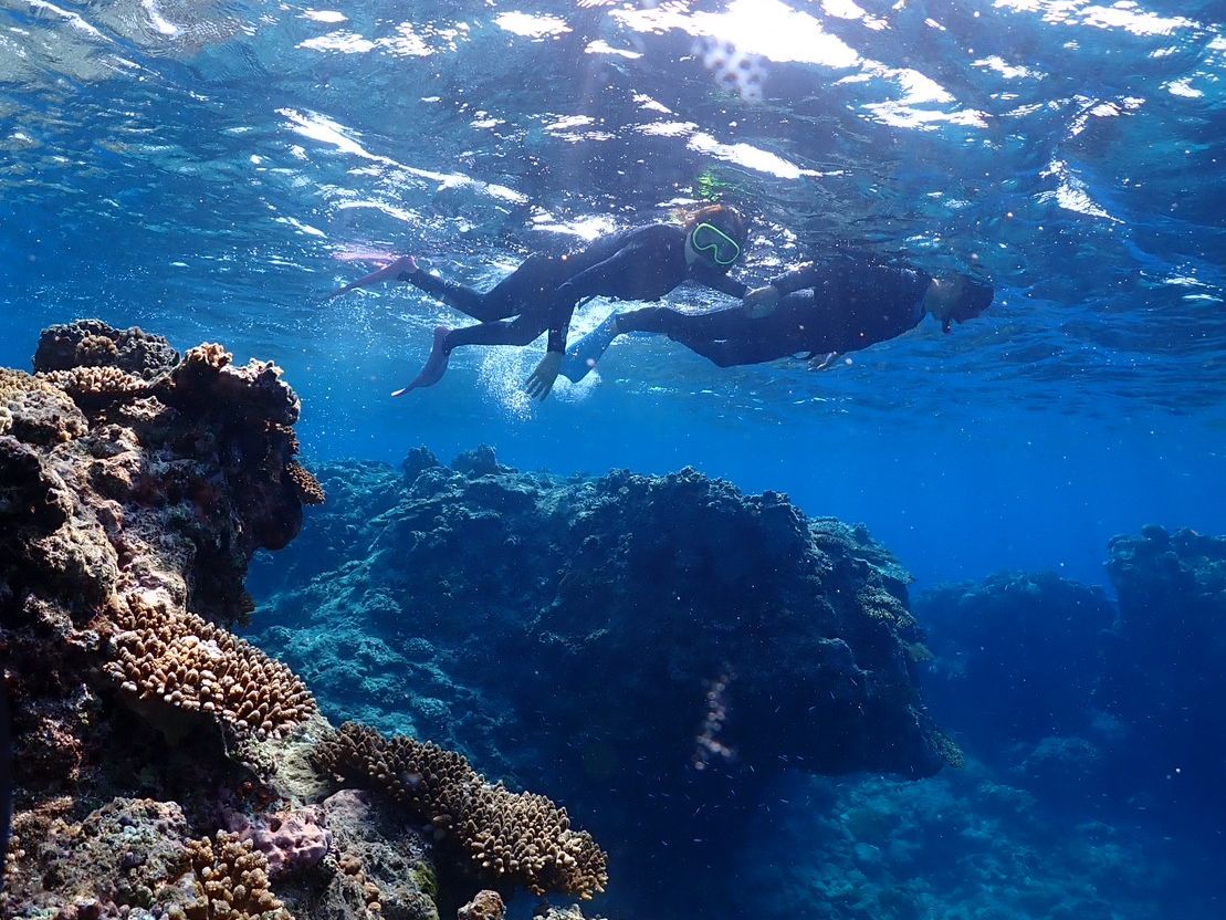 海に入った瞬間、たくさんの魚がいて、感動しました!結構広い範囲を泳ぐことができ、少し場所を変えただけで見える景色が変わりました。他の人は海亀にも会えたそうです。