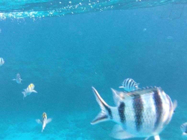ビーチでのシュノーケリングでは波が高いと砂が舞い上がって魚が見えないことがありましたが、このツアーは沖合でのシュノーケリングですので、多少、波が高くても、魚は見えると思います。
