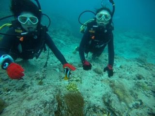 初のダイビングで緊張してましたが、教えて下さる方達もすごく丁寧で不安になることなく楽しい時間が過ごせました。今回 女1人での参加でしたが、私の他にも一人で来ている女性も何人かいたのと、スタッフの方が場を和ませてくれるなどの配慮もありアットホームな感じがよかったです!
