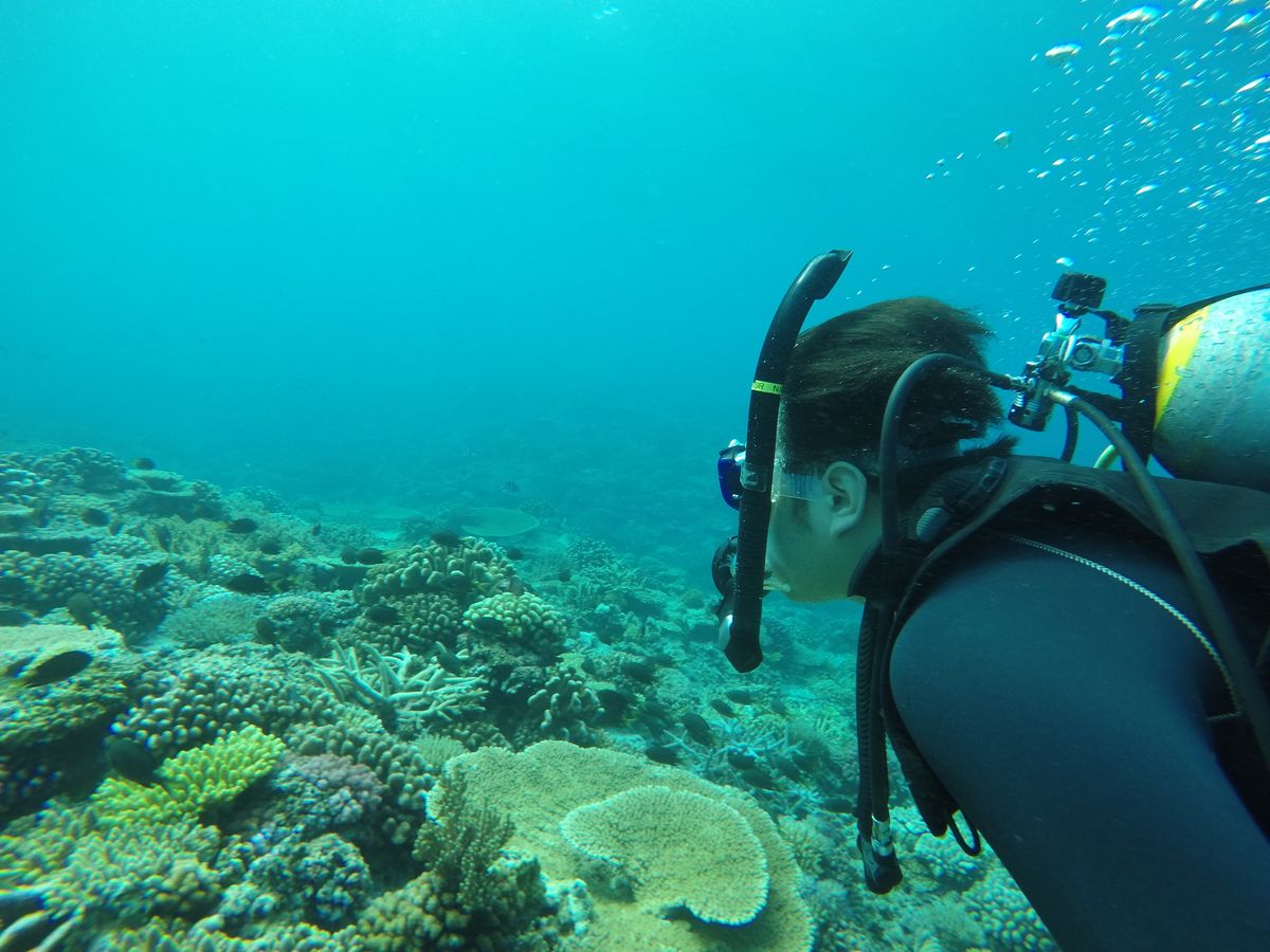 海に入ってからは今まで見たことのないような世界が広がっていて、目の前を魚が泳いだり、キレイなサンゴ礁が手に届く位置にあることに感動しました。深さのあるところで潜っていても、海の底までキレイに見えました。