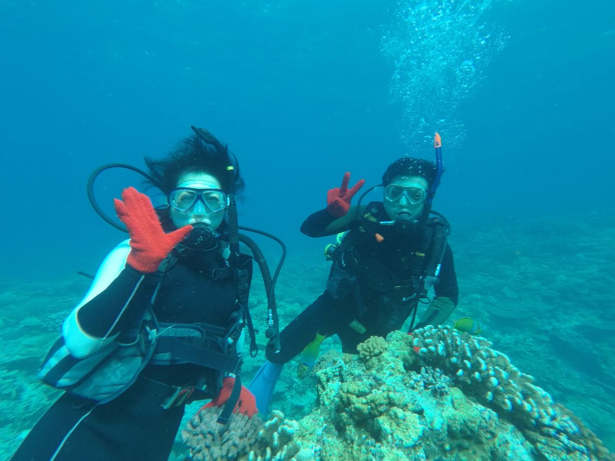 夫婦で初めてのダイビングでした。耳抜きがうまくできず、これ無理かもしれない…と心折れかけてたのですが、ガイドさんがわたしが慣れるまでていねいに教えてくださり、優しく励ましてくれたおかげで無事深いところまで潜ることができましたー!海の中はサンゴがいっぱいでめっちゃきれい!夫婦で感激しました(*゚▽゚*)ホテルまで送迎ありなのも嬉しいです。スタッフのみなさんとても感じよく、さわやかでした!ありがとうございました!