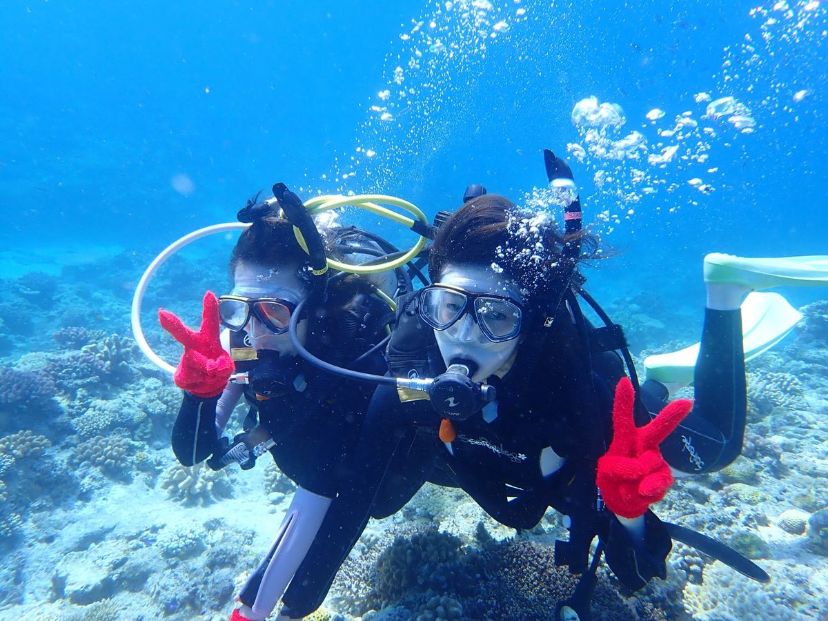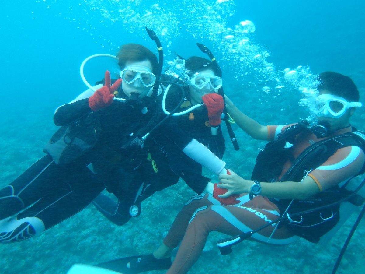 ただ、ダイビング中は2人に対して1名のインストラクターがしっかりとサポートし、水中でも筆談しながら常に言葉を投げかけてくれるので、安心して潜ることが出来ました。