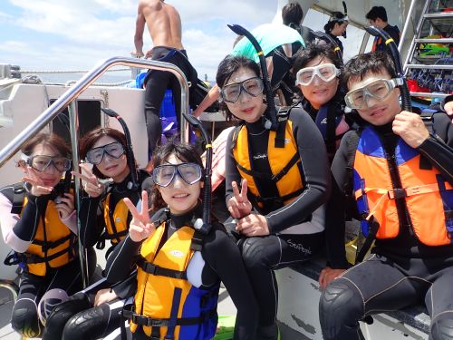 私達はダイビング、シュノーケリング、共に初体験で不安もあったのですが、乗船後〜1つ目のスポットに着くまでにスタッフさんの丁寧な説明&笑いを混ぜながらお話されるので、心配よりわくわくする気持ちがどんどん強くなっていきました♪あと船酔いの心配もあったので事前に酔い止めを飲んでおいたのですが、正解でしたね! 船はかなり揺れるので、心配な方は必ず飲んでおいた方が良いです!他の参加者の方で、船酔いされて辛そうな方もいたので。