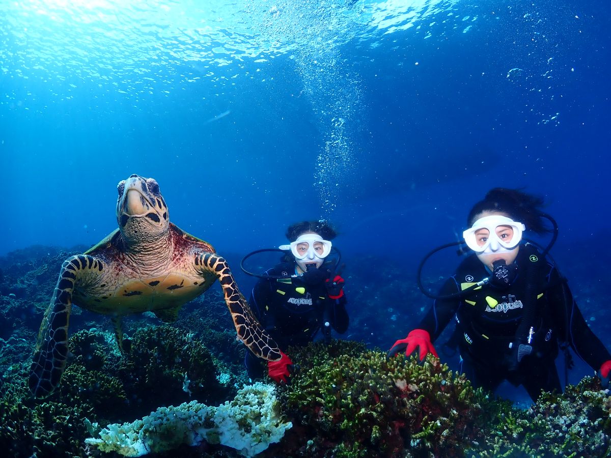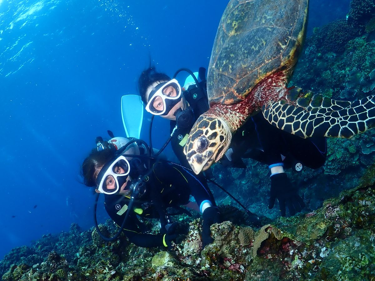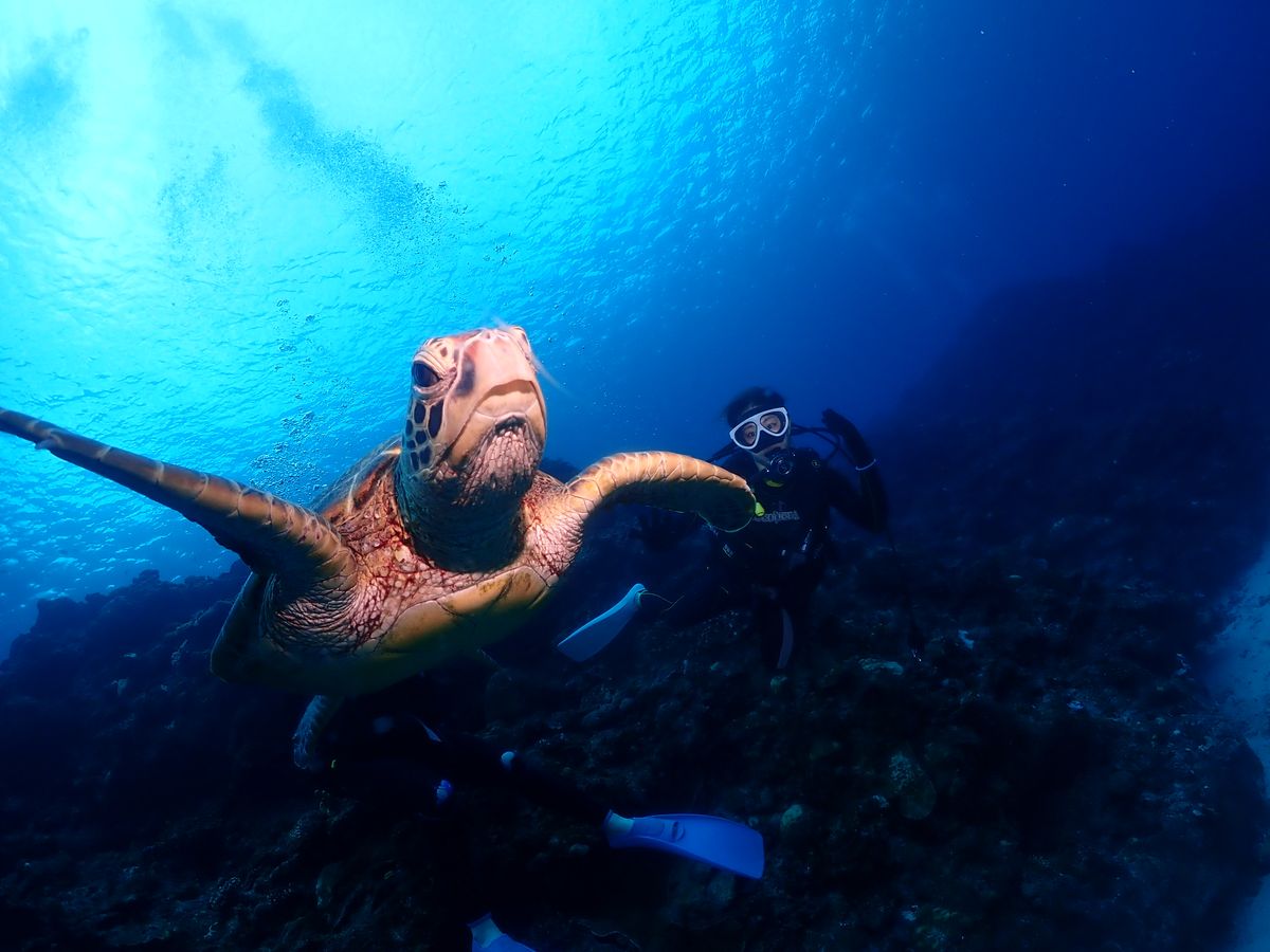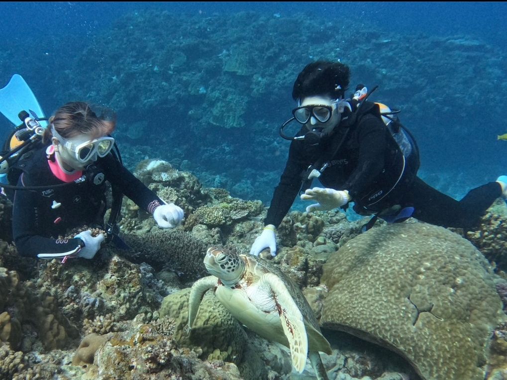 初めてだったので、すごくドキドキしましたが、インストラクターのしょうさんに優しくサポートしていただけたおかげで、安心してダイビングをすることができました!!ウミガメとも会えたし、巨大ナマコも触ることができて、沖縄でしかできない体験を沢山させてもらいました。ありがとうございました。また沖縄に旅行に来たら絶対にダイビングをします!