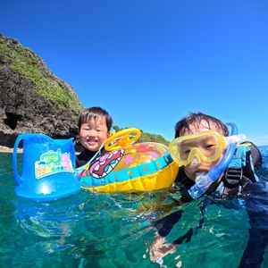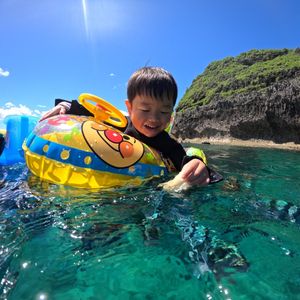 スイミングに行っているけど、まだ泳げるわけではない我が子の初のシュノーケリング。 スタッフさん達がフレンドリーに話しかけてくれて緊張をほぐしてくれましたが、入水は怖くて半べそ。 浮き輪の上にポンと乗って、水中に顔をつけて魚を見たら一気に緊張がとけて自分から魚を探したり、写真撮影は余裕のピース。 最初は、どうなる事かとヒヤヒヤしましたが魚も沢山見れたし、良い思い出になりました。 また沖縄に来た時はお世話になります。