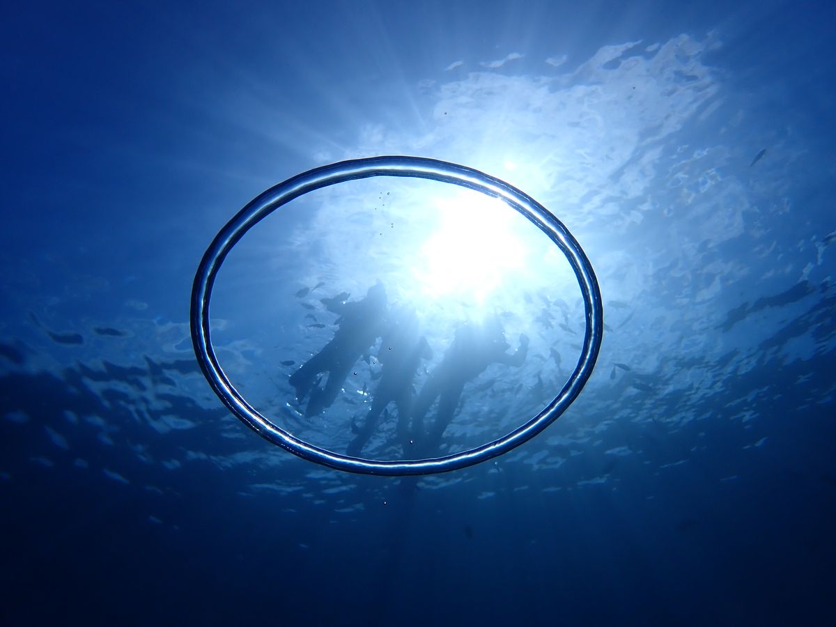 海底から海面に向けて、またバブルリング越しに撮ってもらった写真、素敵すぎて、壁紙にします。ほんと最高!