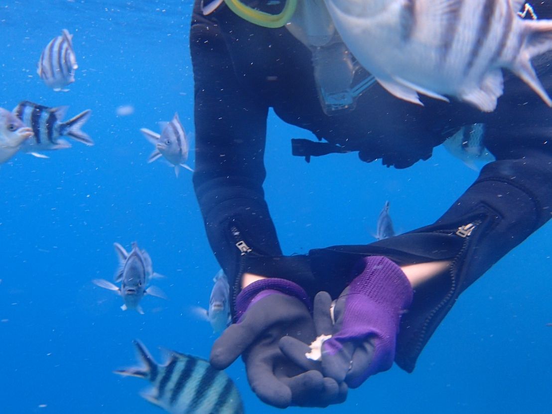 エサやりもシュノーケリングとはちょっと違う魚が集まってきたりしますよ!