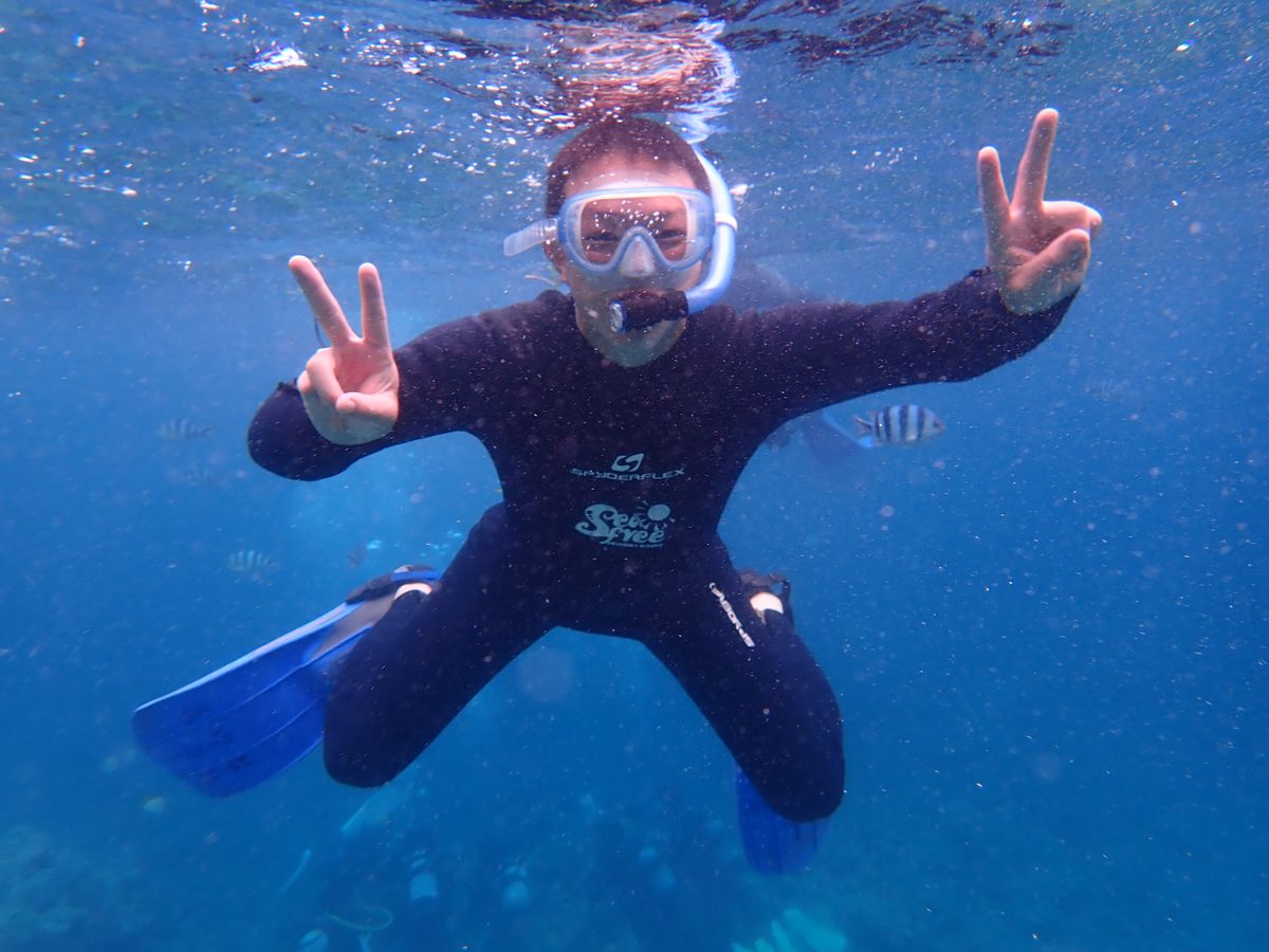 誰も居ない海でゆっくりお魚に餌付けしたり、マンツーマンでついてくださったインストラクターの方に写真を撮って頂いたりして楽しかったです!後ほど撮っていただいた写真を貰えて嬉しかったです♡