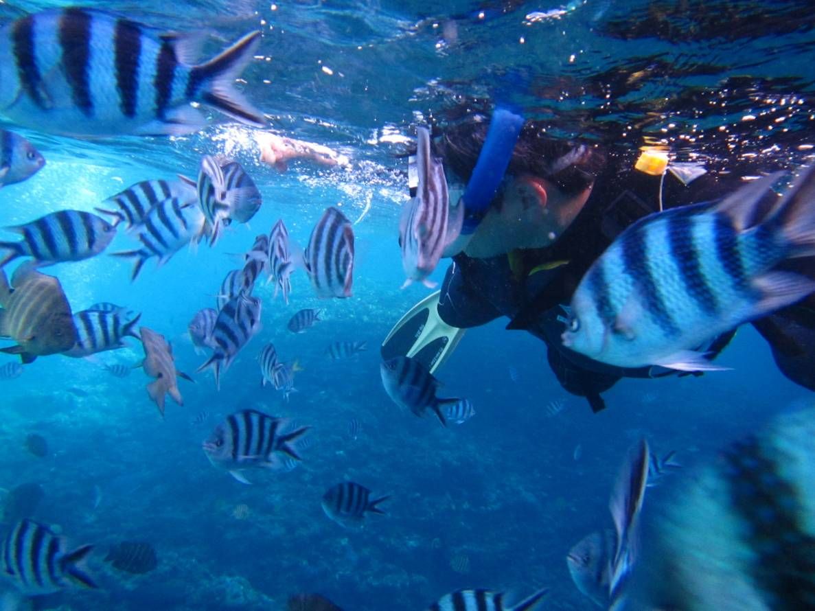 海は大変綺麗で水族館や図鑑でしかみたことのなかった綺麗な水の生き物達と泳ぎ、みることができ、えさをあげるとよってきてくれて感動しました!
