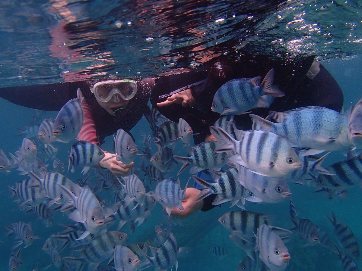 洞窟を出てからは、シュノーケルをしながら魚に餌付けをしたり海の中を観察したりして沖縄の海を満喫出来ました。