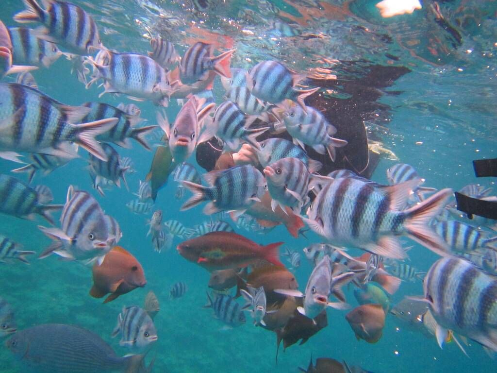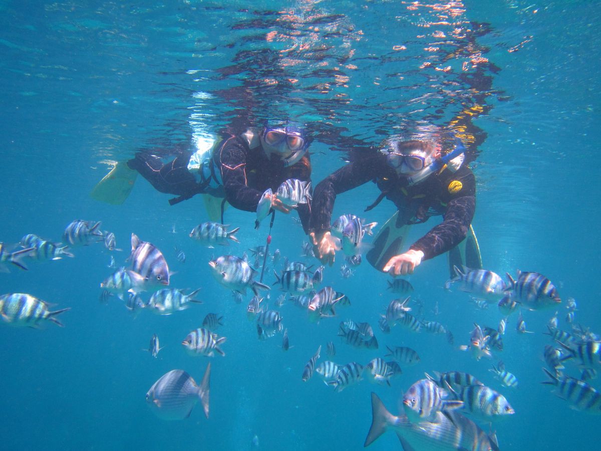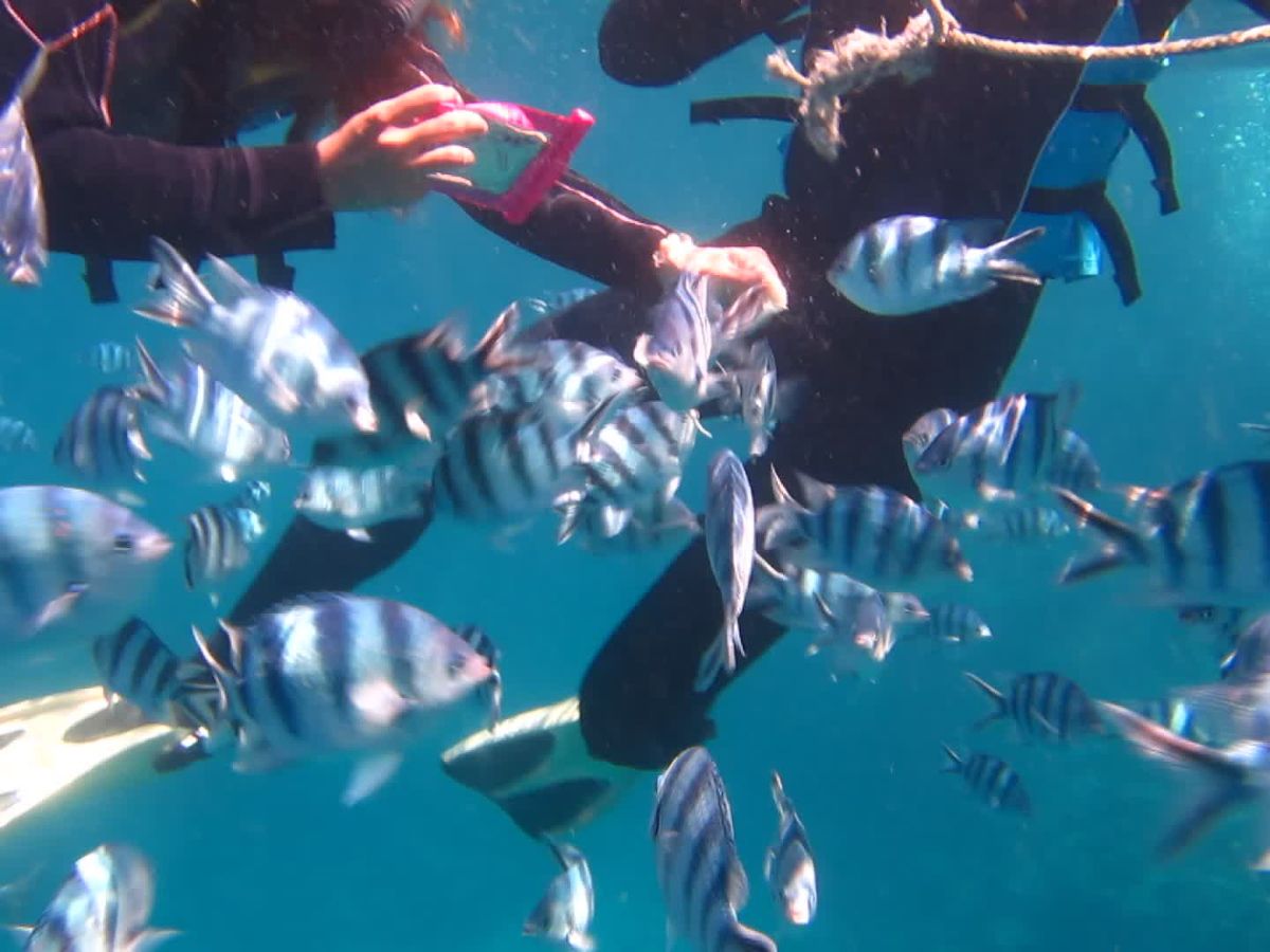 シュノーケリングしたり、お魚に餌をあげたり、2時間十分楽しめます。