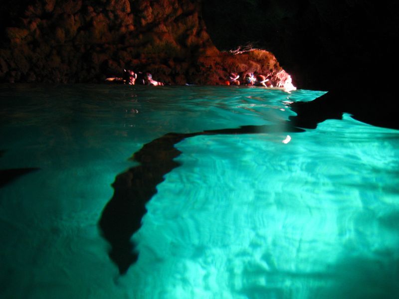 たまたま1組でボートも貸切。青の洞窟もほとんど人がいなくて、貸切状態。下まで透き通るような水の透明度。青くキラキラした水面。何と表現したらよいのかな?
