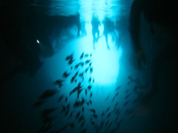 ダイバーも様々なお店がビーチ・ボートと時間帯に関係なく来るため、洞窟内が今回の様に他所の団体と重なってしまう事も御座います。