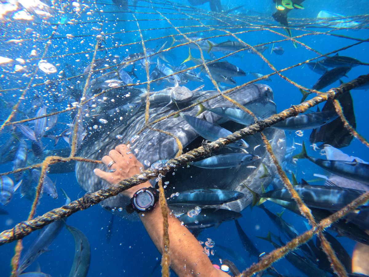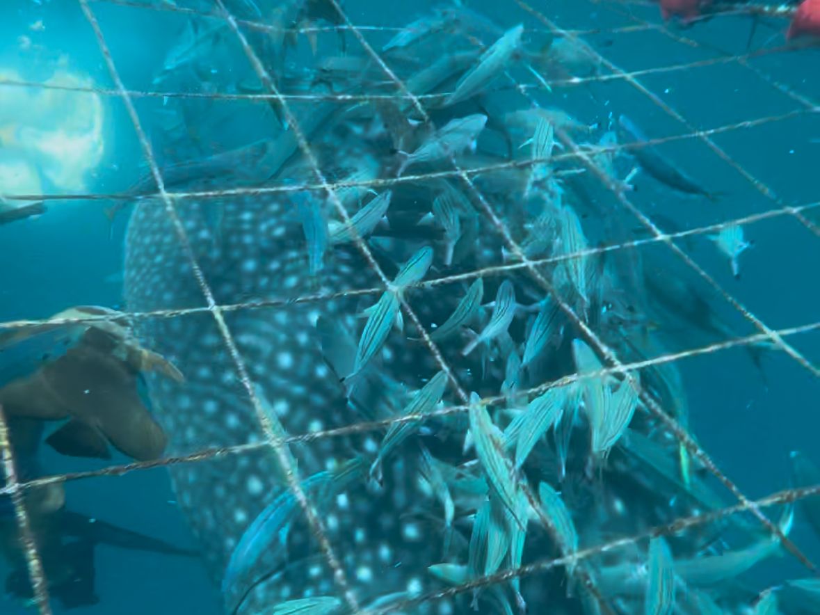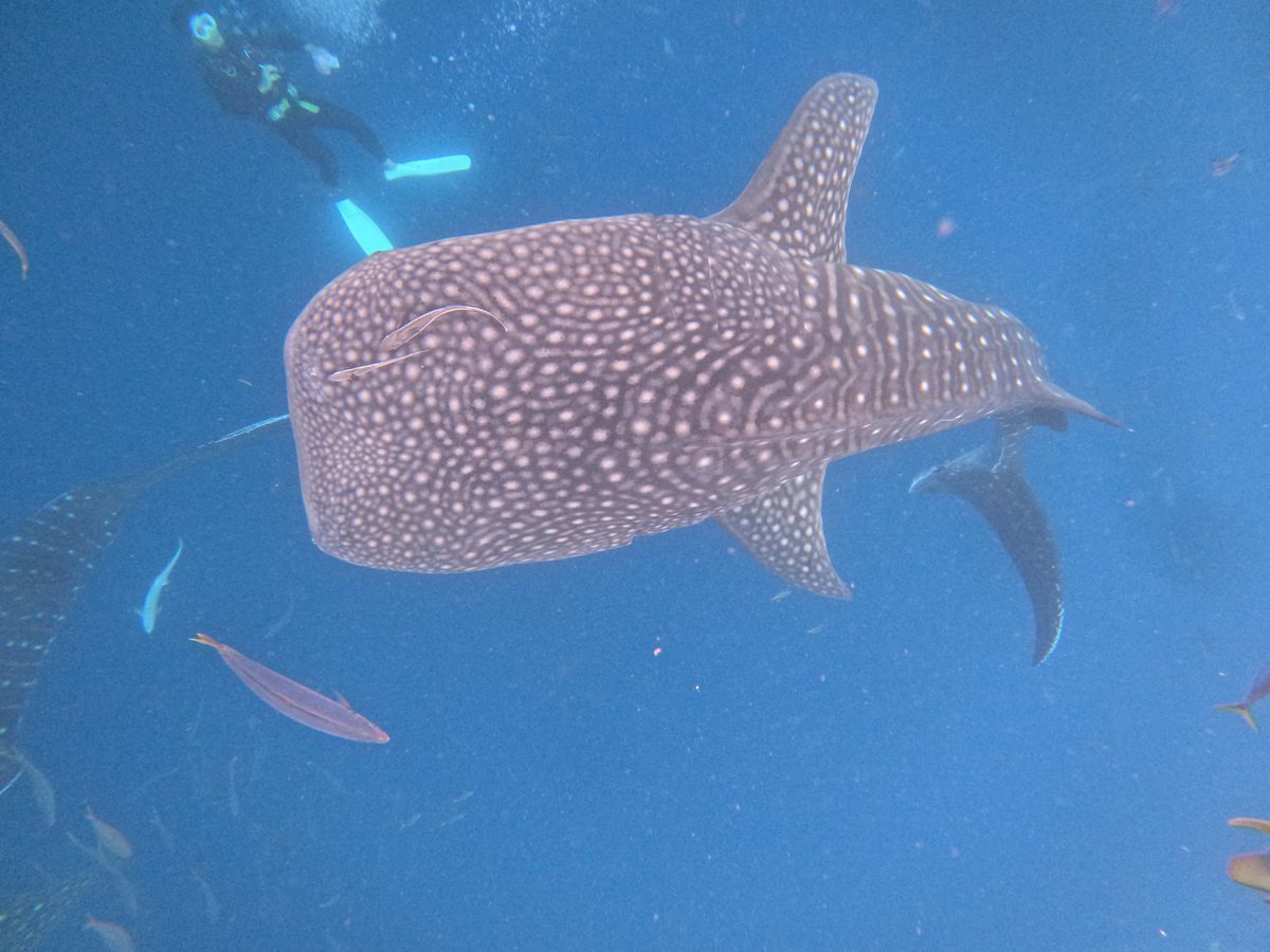 直前にスコールのような雨もあり、ジンベイザメがあがってくるかどうかわからないと言われてましたが、無事に現れてくれました!!