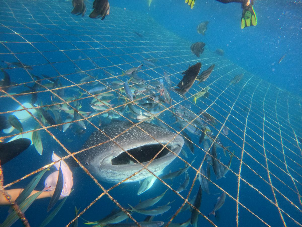 餌を食べている時、大きく口を開けるのですが、口の中までよく見えました。小学6年生の息子は、海に入るまで少し恐怖心があったものの、いざ、海に入りジンベエザメを目の当たりにすると、興奮していました。ジンベエザメは、とっても穏やかで、可愛いかったです。スタッフの方が、寝不足もあり、船酔いしてしまったわたしを、何度も気づかって頂き優しかったです。小魚達への餌やりも体験でき、大満足のツアーになりました。ありがとうございます^_^