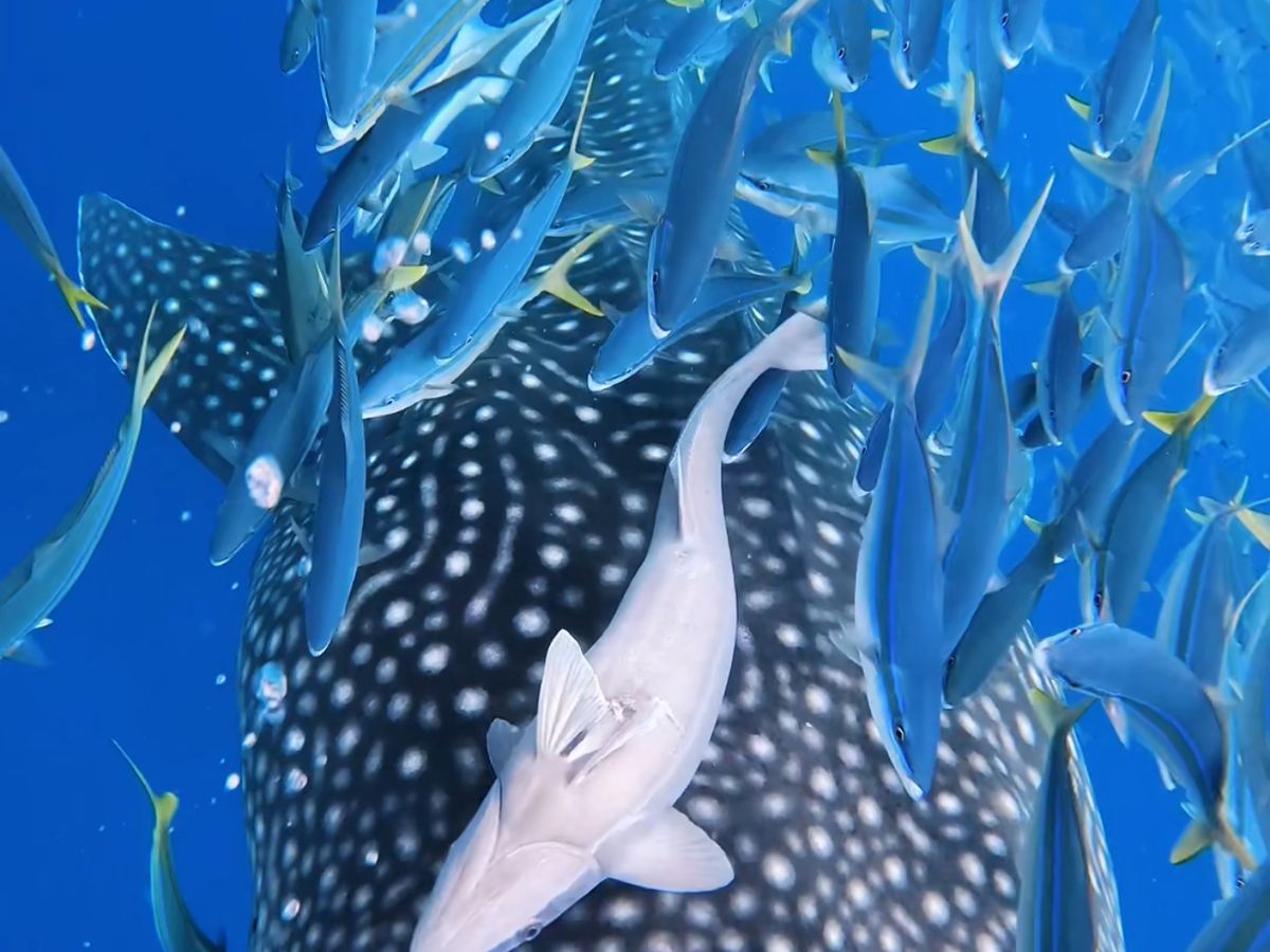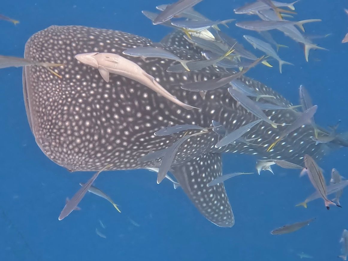 ジンベイザメに至近距離で逢えるとの事でワクワクドキドキ、初のダイビングにも緊張しながら海に潜りました。スタッフの方々が命懸け?でフォローしてくれるので有り難く、安心してジンベイザメに逢えました。大きな口の中、目、呼吸するエラや尻尾の先まで目の前で見られて、夢中に見入りました。ジンベイザメとの時間と大きな魚への餌やり体験もとても貴重な体験となりました。