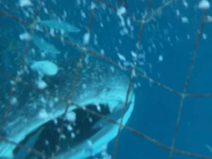 ネットがあっても、喉の奥まで見えるくらい大きな口を開けて自分に近づいてくるのは迫力があった。シュノーケルが好きなら一度は体験する価値はあります。
