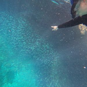 青の洞窟周辺はサンゴ礁が広がっていて、泳いでいる魚を間近で見る事が出来ました!水も透明で申し分無しです!