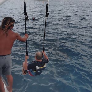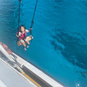 小学6年生の息子、従兄弟のお兄ちゃんと参加致しました。飛び込み、滑り台、パラセーリング、水上アクティビティ、スノーケルと1日がっつり遊べました^_^ スタッフの方達も、安全面には十分注意していて、子供が船の上を、ひとりでどこかに行ってしまっても、安心して過ごす事ができました。