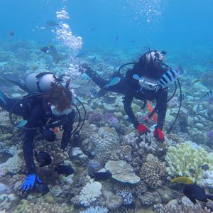 梅雨明け1番くらいに参加できました!たまたまダイビング参加者が1組だったのでインストラクターさんが時間をかけて教えてくれました。熱帯ならではのカラフルな魚がたくさん見れて、クマノミの赤ちゃんまで教えてくださりとても嬉しかったです!写真もたくさん撮ってもらいました。またぜひ参加したいと思います。