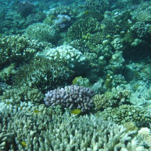 天気は悪くても海の中は透明で、海底にサンゴがたくさんあるのが見えます。