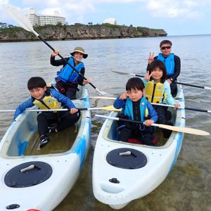 子供たちに沖縄の綺麗な海を見せたくてシーカヤック-シュノーケリングツアーに参加しました。