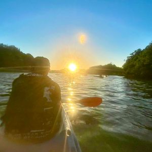 沖縄のマングローブの間をカヤックで冒険するようなツアーなんてないのかなあとネットで探していたらここに行きつきました。マングローブ、カヤック、さらにはサンセット!!イメージ図でのカヤックから見るサンセットがとても綺麗で、こんな綺麗なサンセットを拝みたい!!という思いでこのツアーに参加しました。前日の段階で天気予報を確認すると、あいにくの雨。うーん、どうしようか、相方と相談した上で折角だし行ってみようということに。幸いにも当日雨は降りませんでしたが曇天で、波が高く川から海には出られずで遠目になんとなーくサンセットを拝みました(T ^ T)。ただ、川では大きな魚が飛び跳ねたり、小さいカニがいたり、ミサゴ(英名オスプレイ)が近くを飛んでいたりと自然を感じられました。ガイドさんからは沖縄や自然についての興味深いお話をたくさん聞けました。7月、8月がサンセット見るにはいいということなので、また来年にでもリベンジしたいです!