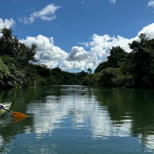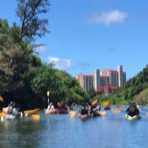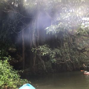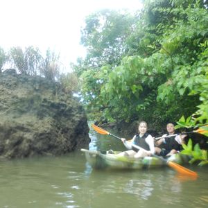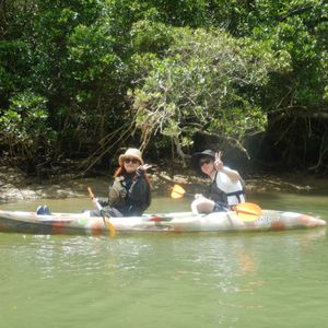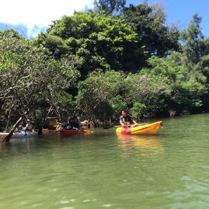 初めてのカヤックで乗り込む時もドキドキでしたが、初心者でもすぐに操作できとても楽しめました。前日の大雨で比謝川が茶色になっていましたが、これもレアかな 笑 スタッフの方のお話が勉強になりました。真っ赤なカニや食べると大変な植物のお話しなどとても楽しかったです。後半スコールのような大雨になってしまい、植物の下でしばらく雨宿りしたのも逆によい思い出になりました。比謝川の自然や生き物に触れることができ大満足のツアー、スタッフの方が合間に写真を撮ってくれたのも感謝です。素敵な写真ありがとうございました♪