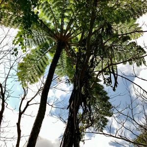 途中、バスを降りて森を散策。日本一大きなドングリが実るオキナワウラジロガシや巨大なシダなど、専門のガイドさんの解説に思わず聞き入る。
